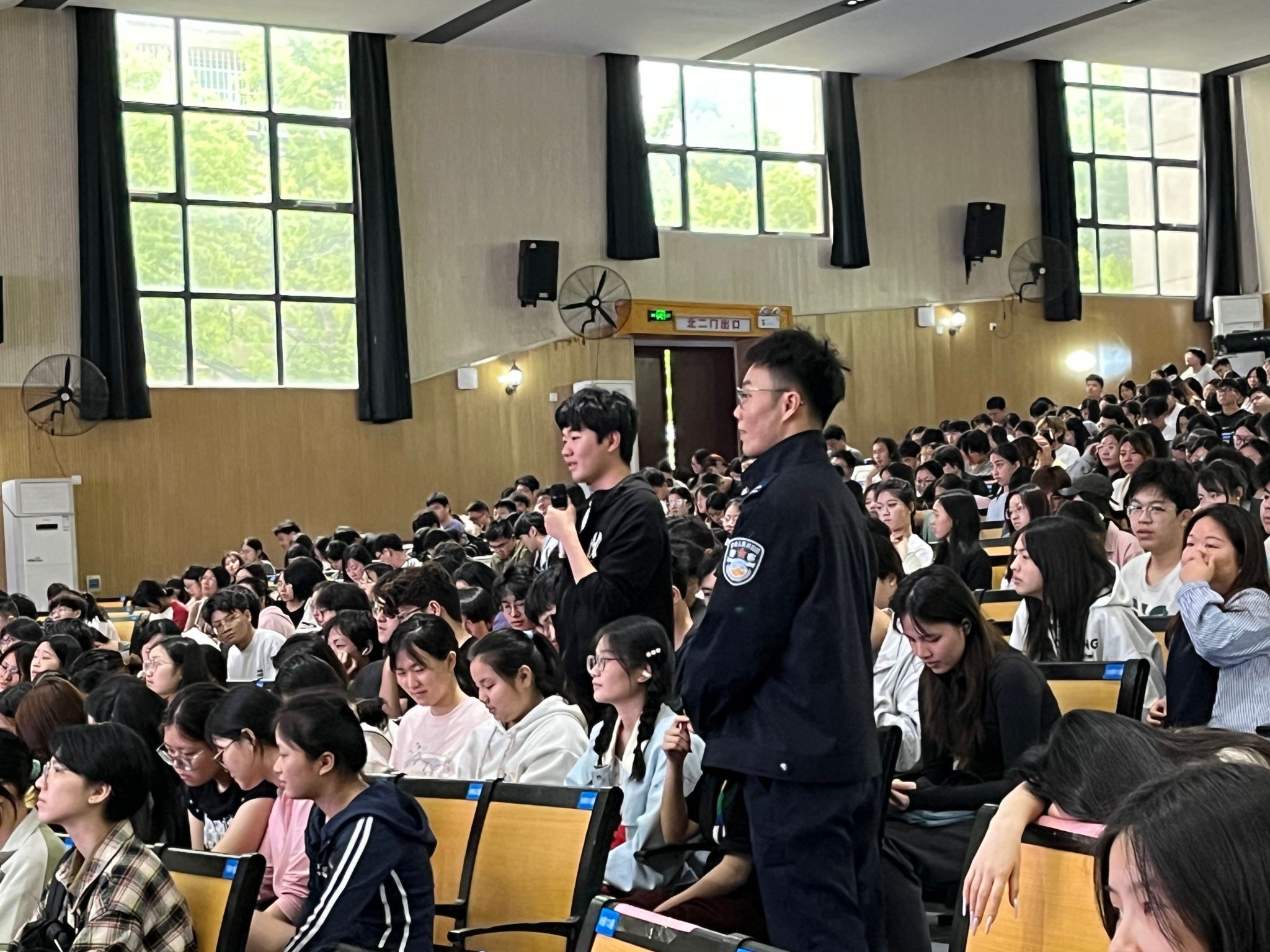 讲座伊始,唐贝警官通过真实案例视频、图文展示等形式,对常见电诈发案类型进行了高度概括,对部分典型案例进行了全面复盘,对同学们上当受骗过程中的心理状态进行了精准分析,对遇到诈骗时可以采取的防范措施进行了重点介绍,对主动或被动状态下涉嫌诈骗行为需要承担的法律后果进行了简要讲解。
