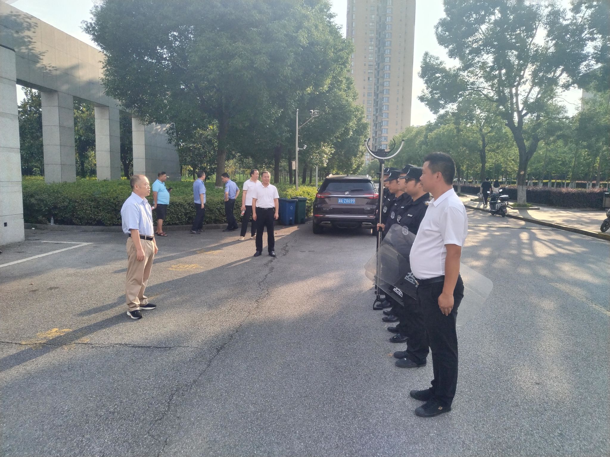 为提高校园安保人员的快速反应和应急处突能力,增强校地反恐协同。6月14日,学校在主校区开展了反恐防暴演练活动。咸嘉湖派出所所长邹菡、教导员欧阳诚、副所长张文亲临现场指导演练,本次演练活动由学校保卫部主导、中保恒杰保安公司具体实施。