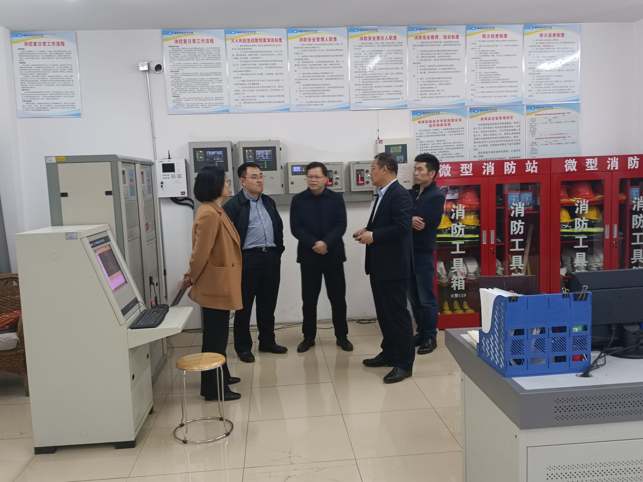 3月18日,湖南工商大学保卫部任治部长、湖南第一师范学院保卫部成海英部长、长沙师范学院保卫部卜朝相部长联袂来best365官网考察调研安全保卫工作,并实地了解了学校视频监控系统和火灾自动报警系统的运行情况。