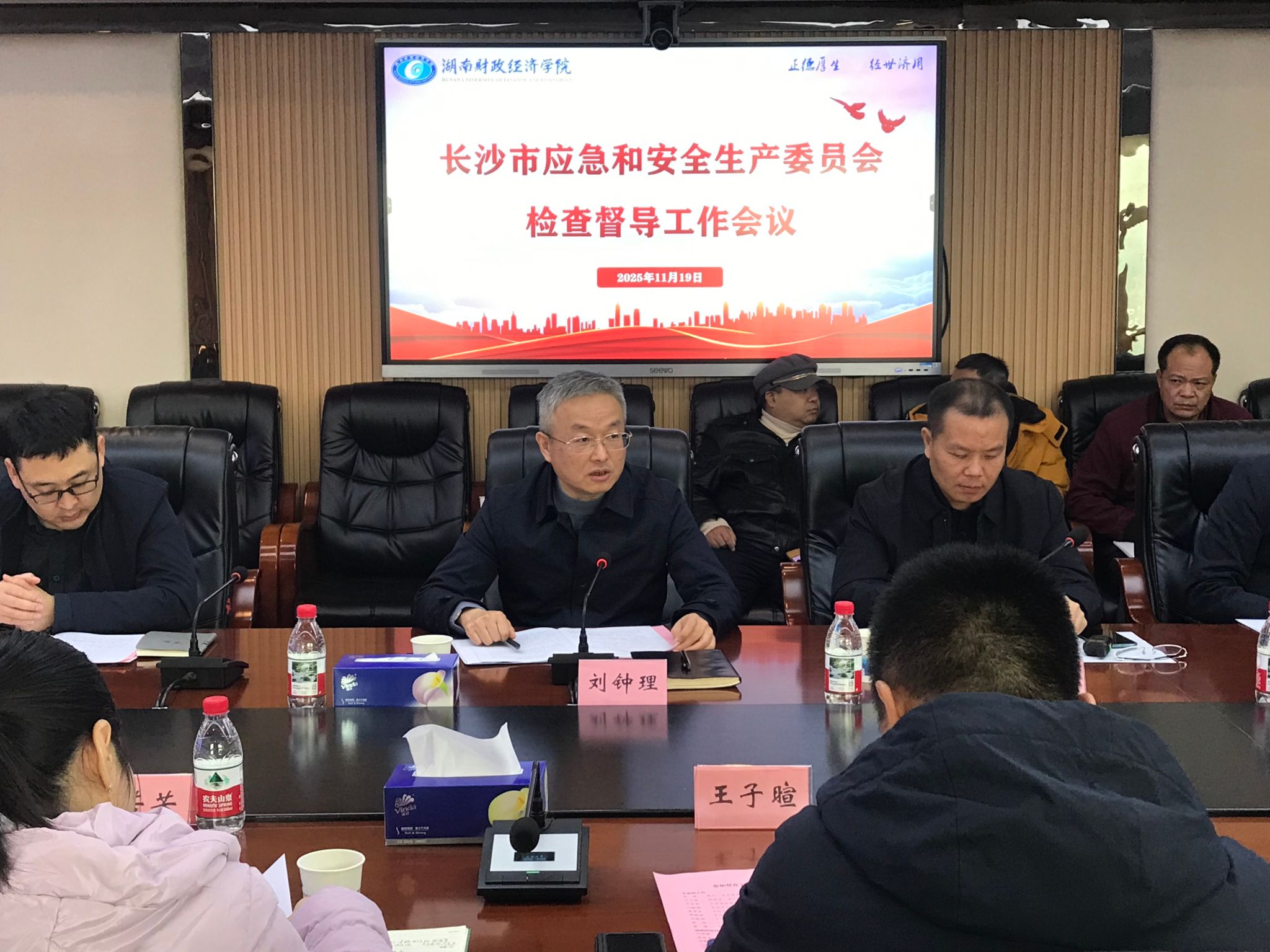 11月19日上午,长沙市应急和安全生产委员会专家组来校督查学校的安全工作开展情况。副校长刘钟理,相关职能部门、二级学院负责同志参加了督查工作会和现场检查工作。