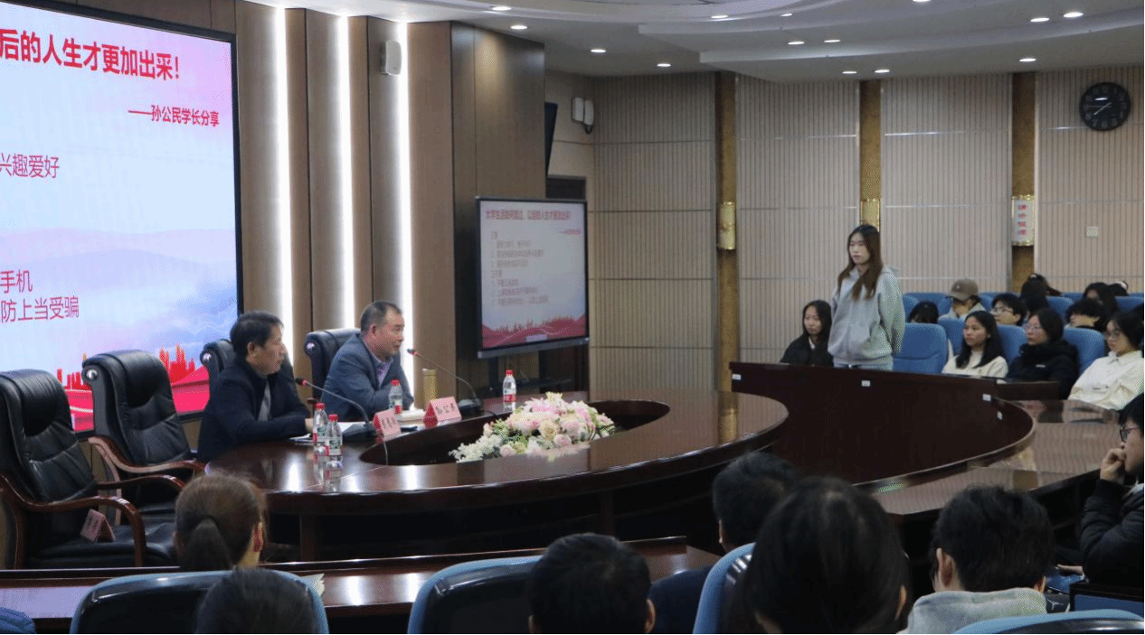 互动环节中,同学们围绕学业规划、职业发展、就业前景等话题踊跃提问,孙公民一一给予细致解答,现场气氛热烈。