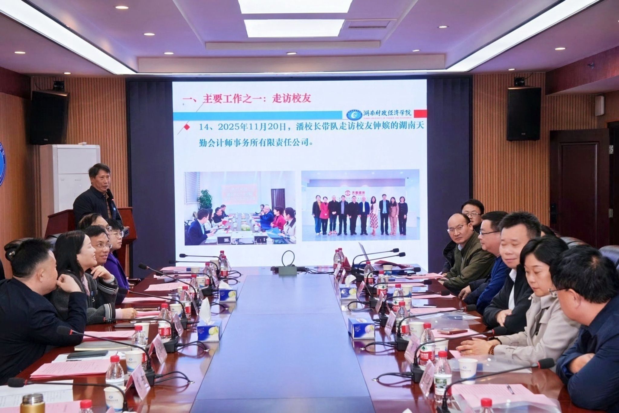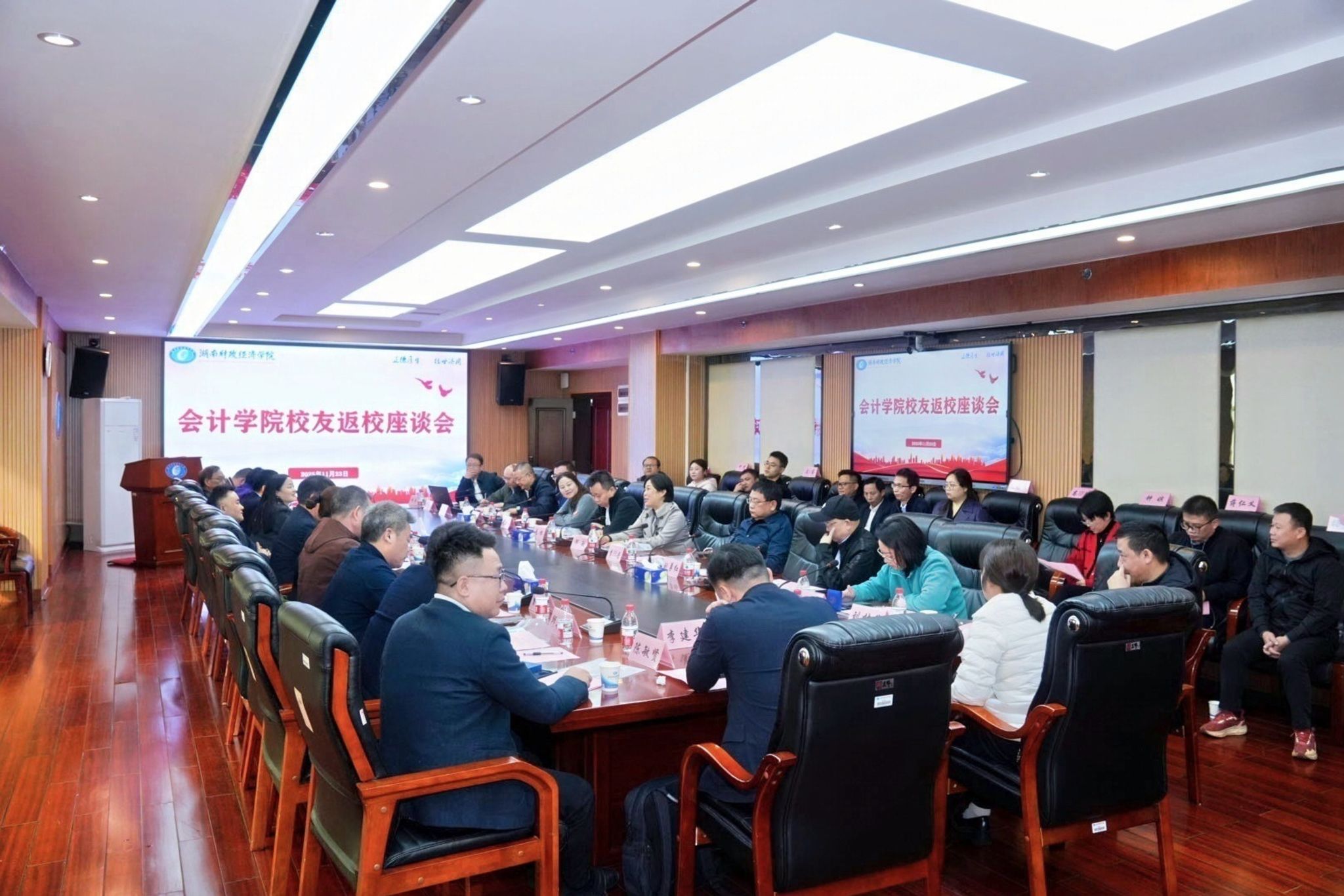 (本网讯)11月23日,会计学院校友分会年度总结大会暨校友座谈会于办公楼715会议室顺利举行。副校长兼会计学院院长潘爱民、创新创业与人工智能学院党委书记兼校友总会会长余华、会计学院党委书记戴恩湘一行以及35名校友代表参会。会议由会计学院党委副书记肖芳主持。