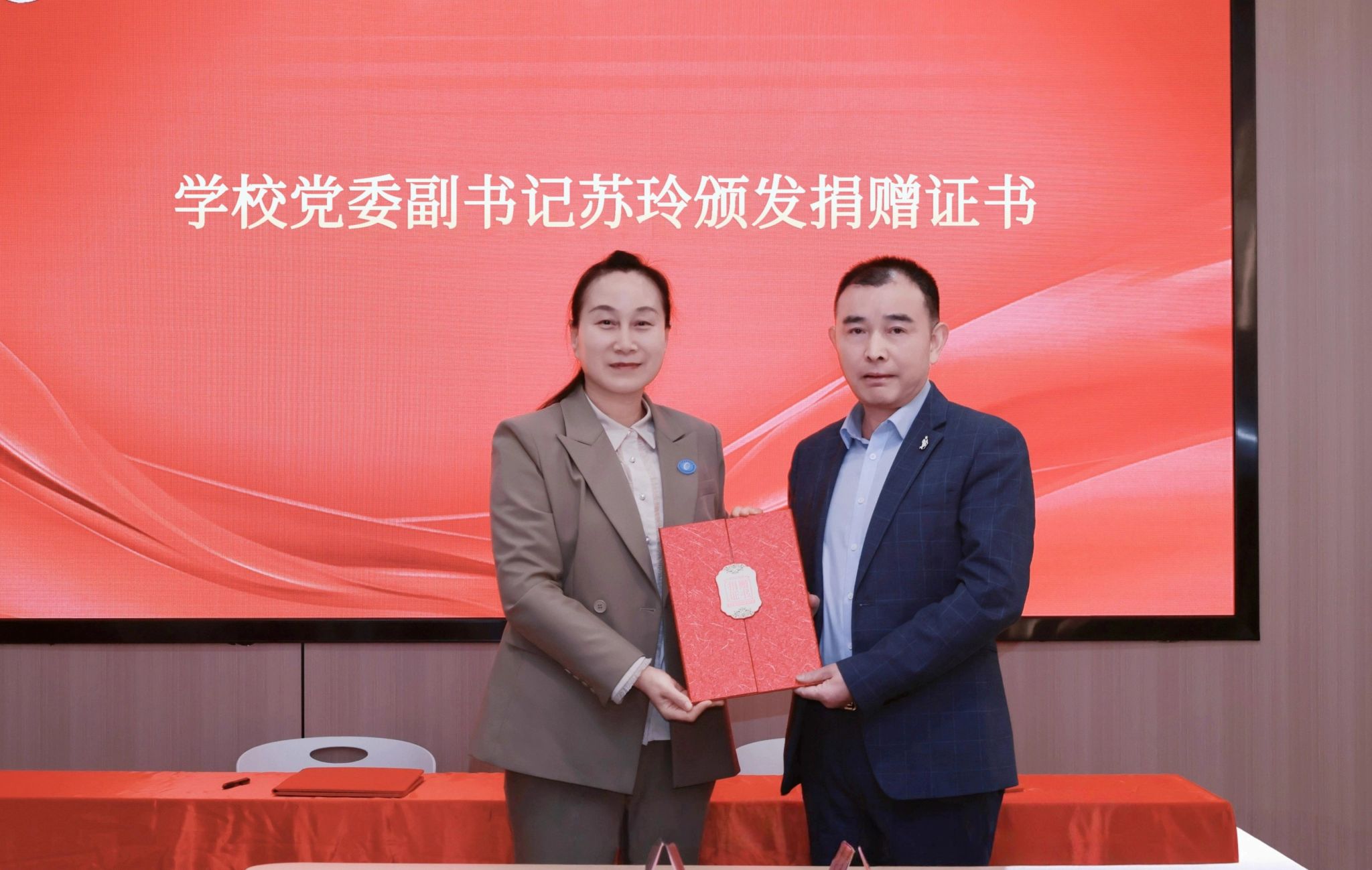 捐赠仪式上,1992届会计专业校友、亚太鹏盛税务师事务所股份有限公司合伙人孙公民向母校捐赠10万元,注入校友助学金。这是他继2024年捐赠10万元后,再次反哺母校育人事业。