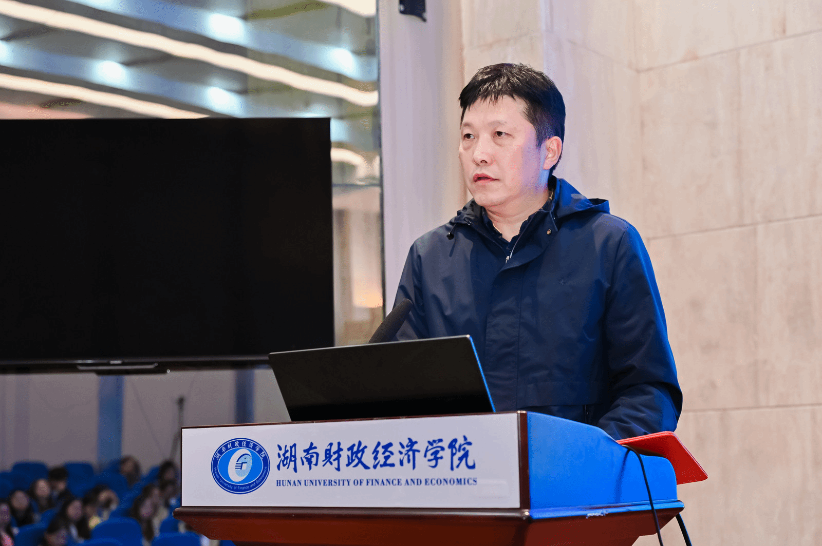 施宇峰总经理阐述了新区的国有资本布局与对科创事业的支持。他重点推介了“天天麓演”平台,并向在场同学发出邀请,积极利用这一平台链接更多双创资源。
