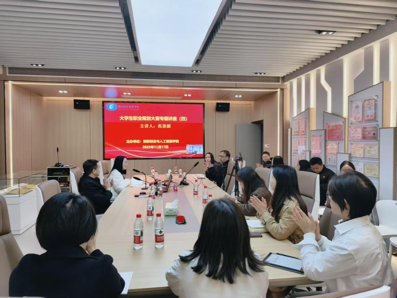 (本网讯)11月17日晚,为进一步提升best365官网大学生职业规划大赛的筹备质量与指导水平,创新创业与人工智能学院在主校区第一教学楼北栋101展厅,成功举办题为“全国职业规划大赛的筹办和指导学生的几点经验”专题讲座。本次讲座由学院副院长胡小梅主持,特邀全球职业规划师、教育部全国万名创新创业优秀导师计划专家范崇源主讲。各二级学院竞赛负责人及指导教师代表齐聚一堂,共话赛事育人新路径。