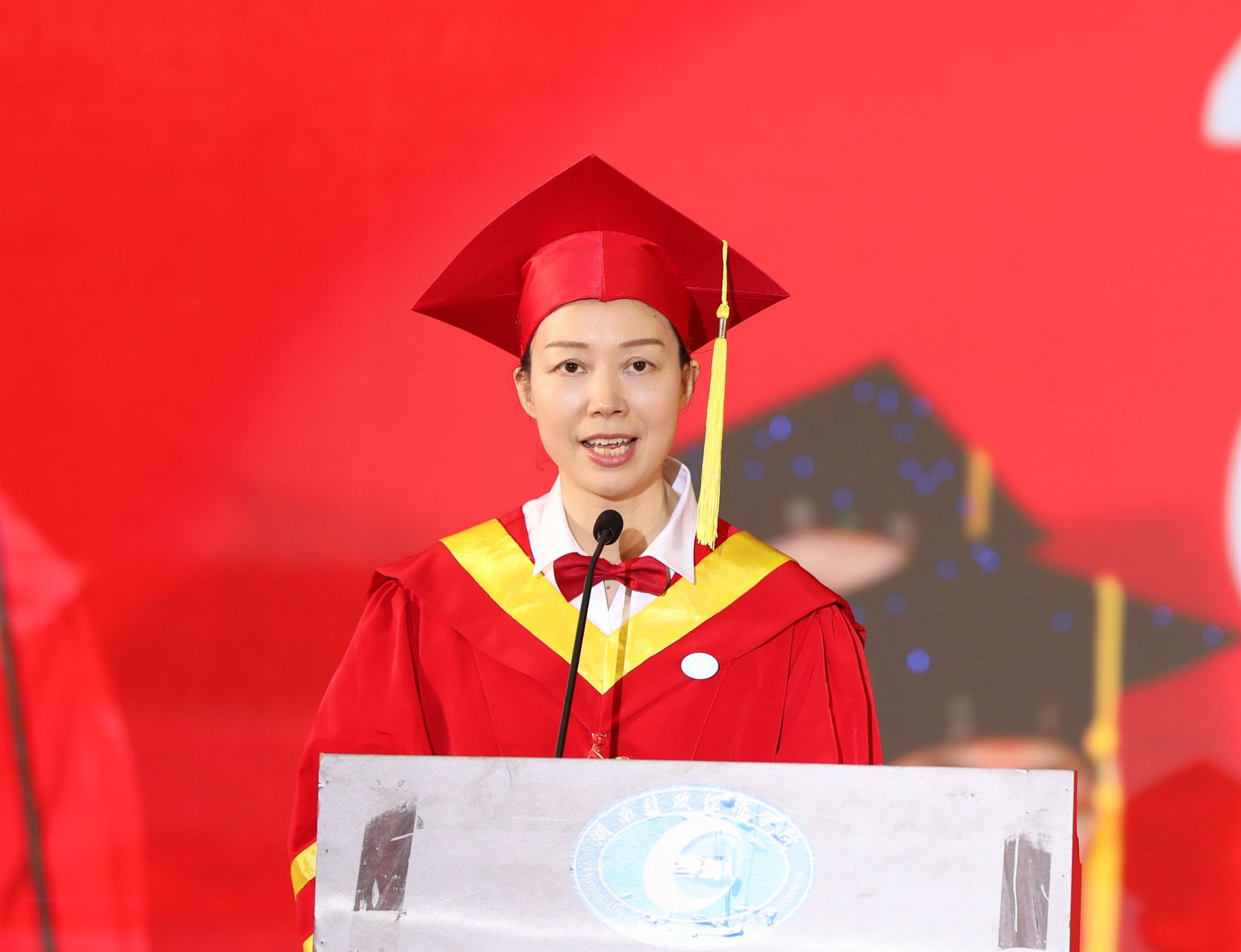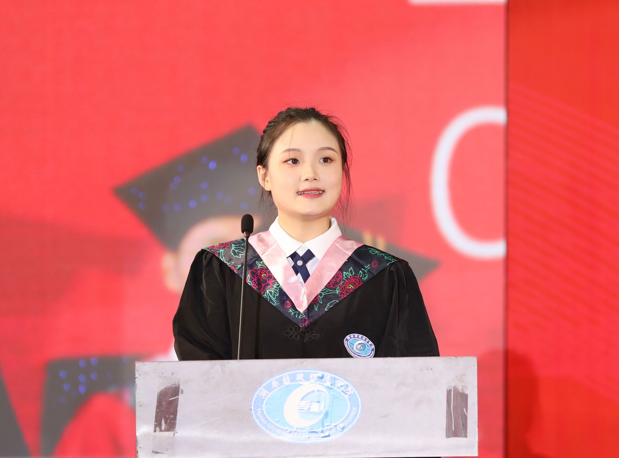 校友代表、省政协委员、株洲地区爱尔眼科医院CEO侯爱利分享了自己的奋斗历程和感悟,勉励毕业生多学一点、多想一点、多干一点,不断提升能力和素养,积极迎接未来的挑战。毕业生代表、会计学院2020级会计二班周敏婷深情回忆了4年大学生活的点点滴滴和成长蜕变,感恩师长的谆谆教诲和同窗的携手同行,号召全体毕业生铭记校训,用行动力量践行新时代中国青年的责任担当。