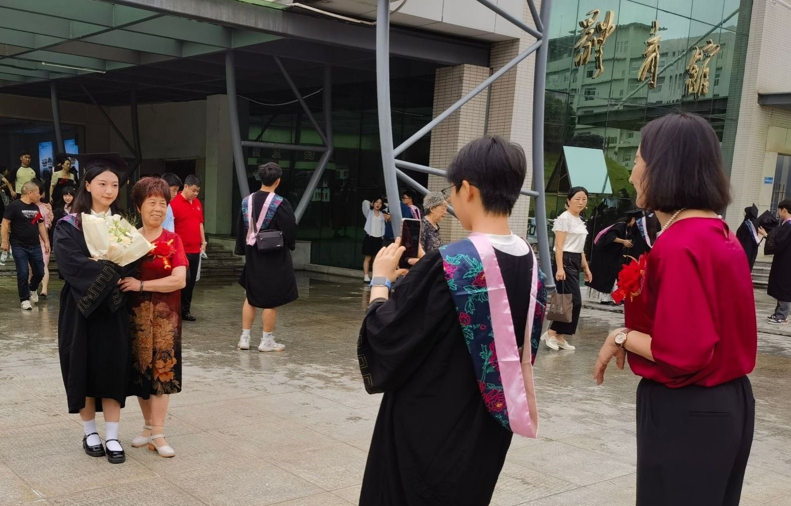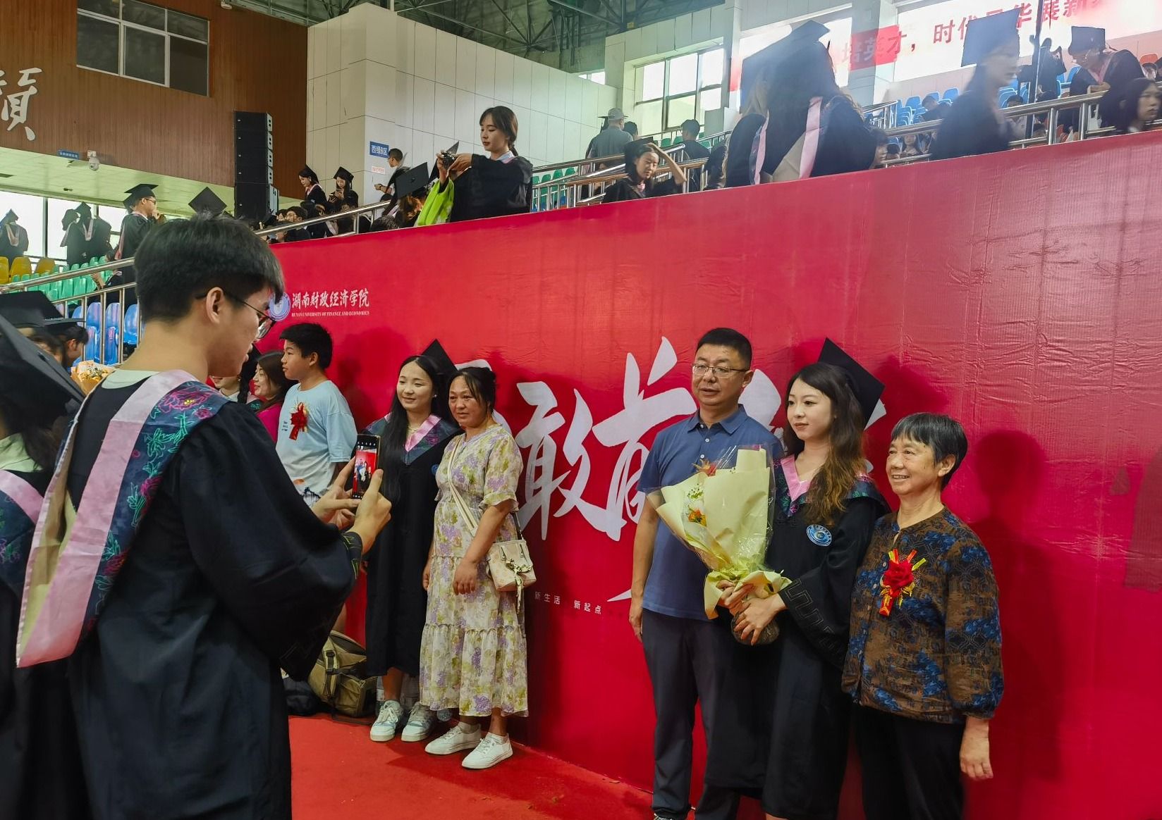 毕业生与家人合影留念 贺亭榕/摄