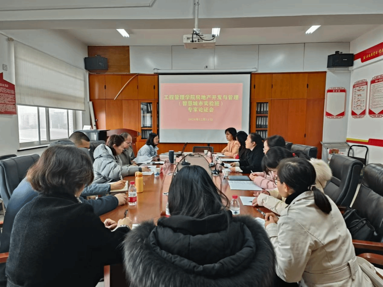 (本网讯)2024年12月11日下午,工程管理学院在办公楼911会议室举办了房地产开发与管理(智慧城市运营)实验班的专家论证会。会议由工程管理学院院长颜红艳主持,副院长刘纯霞、党委副书记刘绿丝以及房地产系全体教师出席,邀请了华中师范大学的陈淑云教授和湖南大学的徐莹教授两位专家指导