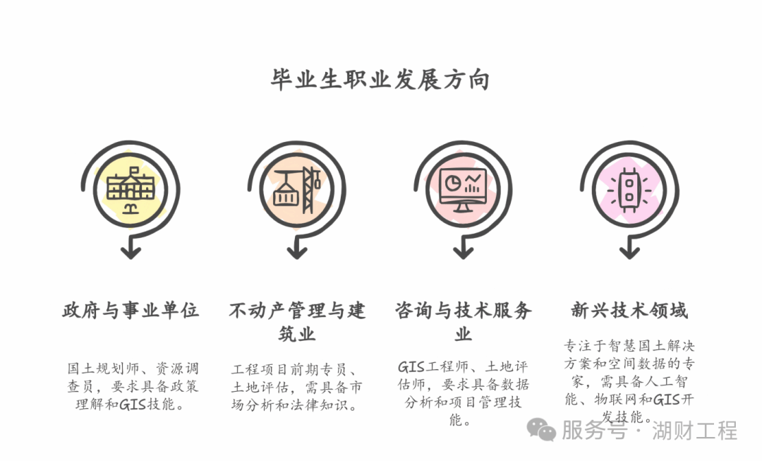 ● 投身市场经济:不动产开发与经营、土地及房地产评估、资产管理、土地投融资等领域的企业对专业人才需求旺盛,为毕业生提供广阔发展平台。
