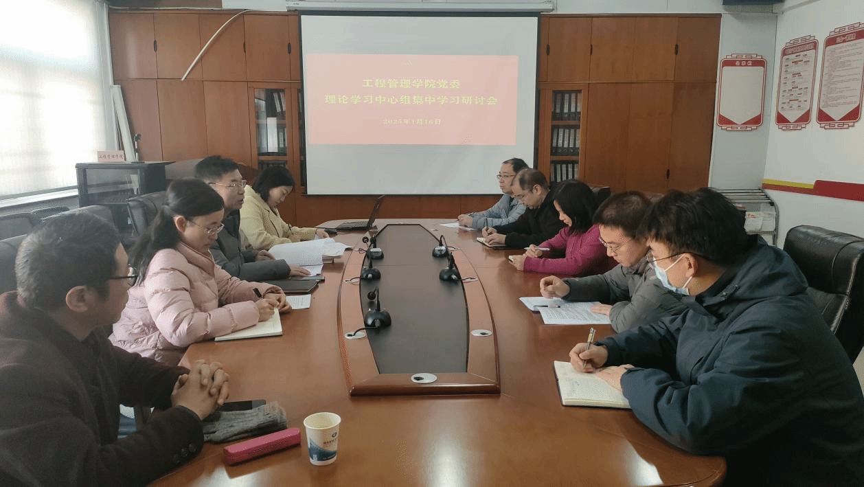(本网讯)1月16日,工程管理学院党委在办公楼911召开理论学习中心组集中学习研讨会,院长、院党委副书记颜红艳主持会议,全体院领导、院党委委员参加。