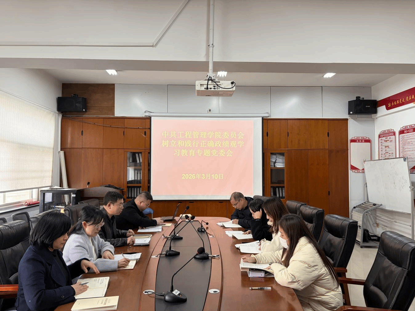 (本网讯)3月10日下午,工程管理学院党委召开党委会,就树立和践行正确政绩观学习教育工作进行专题部署。会议由学院党委书记向占宏主持,全体院领导、党委委员及相关人员参加会议。