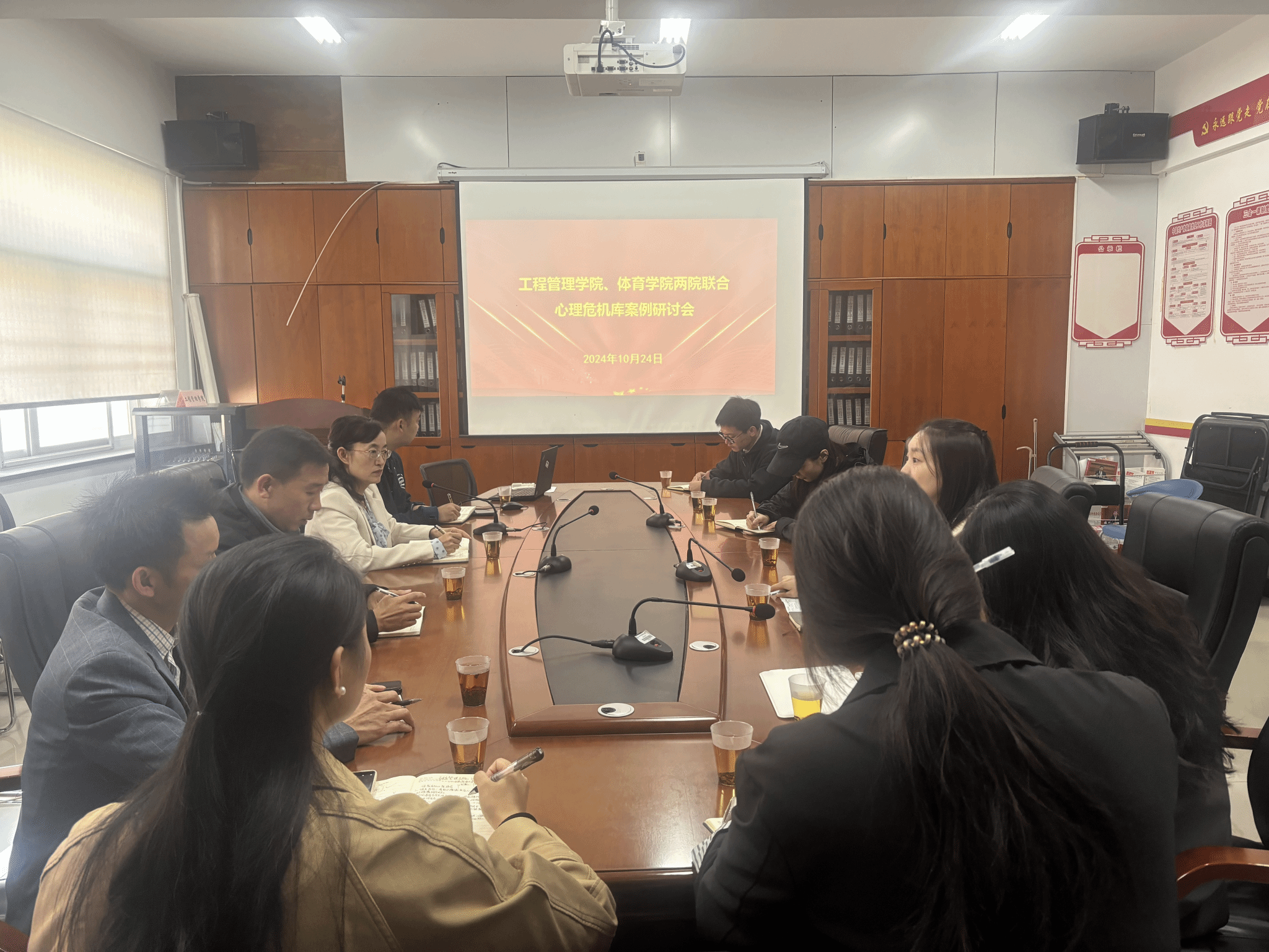 (本网讯)为加强心理工作建设,促进学生心理健康发展,提升本年度心理健康教育工作。工程管理学院联合体育学院,于2024年10月24日上午9点在办公楼911会议室召开心理危机案例研讨会。工程管理学院党委副书记刘绿丝,体育学院直属党支部副书记范则周、心理健康中心周彩萍、胡乔虹以及两院全体辅导员出席此次会议。