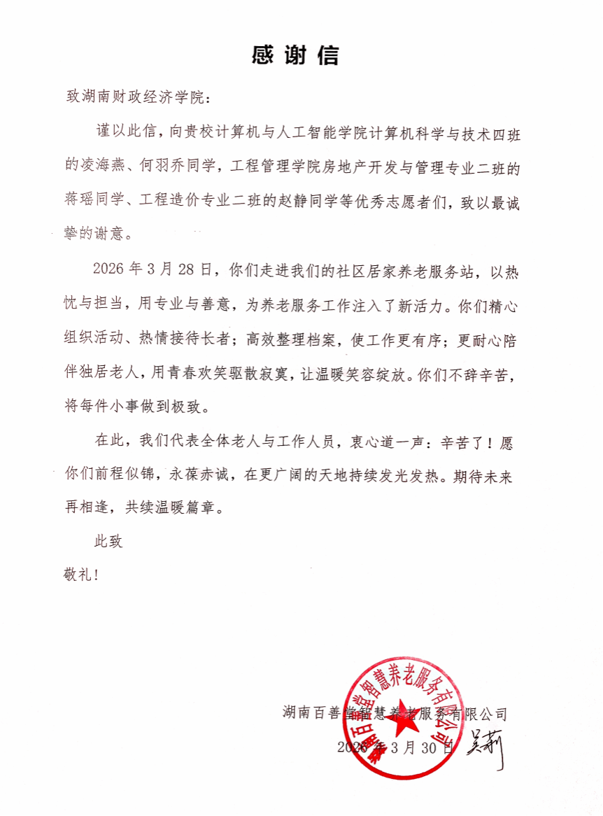 (社区对学子志愿活动的感谢信)