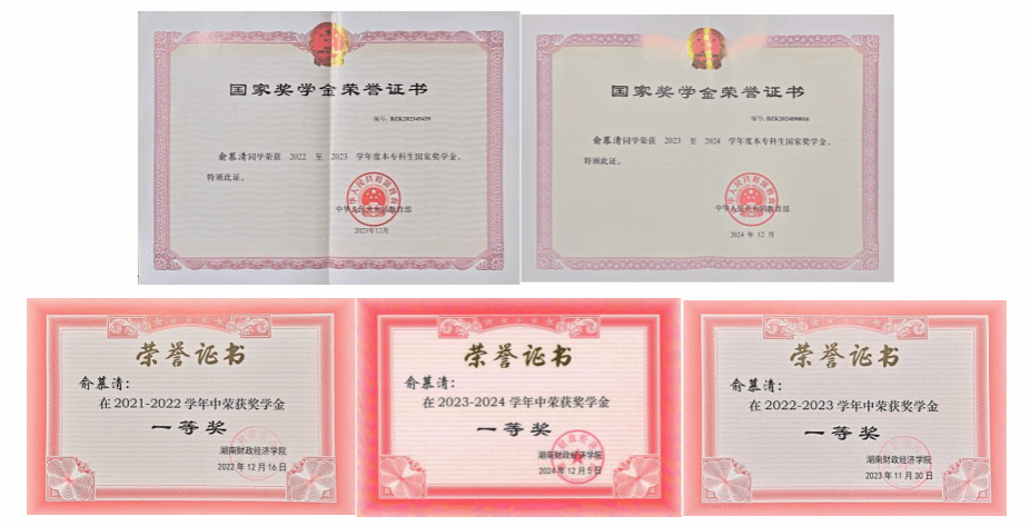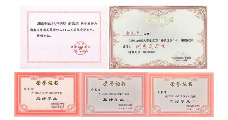 俞慕清,女,中共党员,现任2021级工程管理一班团支书,曾任工程管理学院团学两会执行主席,荣获2022-2023学年、2023-2024学年“国家奖学金”,连续三年获校级一等奖学金,获得省级“优秀毕业生”、湘江新区“优秀实习生”、“三好学生”、“优秀团干”等称号。作为校女子篮球队的一员,代表学校参加了湖南省大学生篮球联赛,并取得了第五名的佳绩。大学四年,共获得国家级奖项3项,省级奖项4项,区级奖项1项,校级奖项24项,院级奖项12项。
