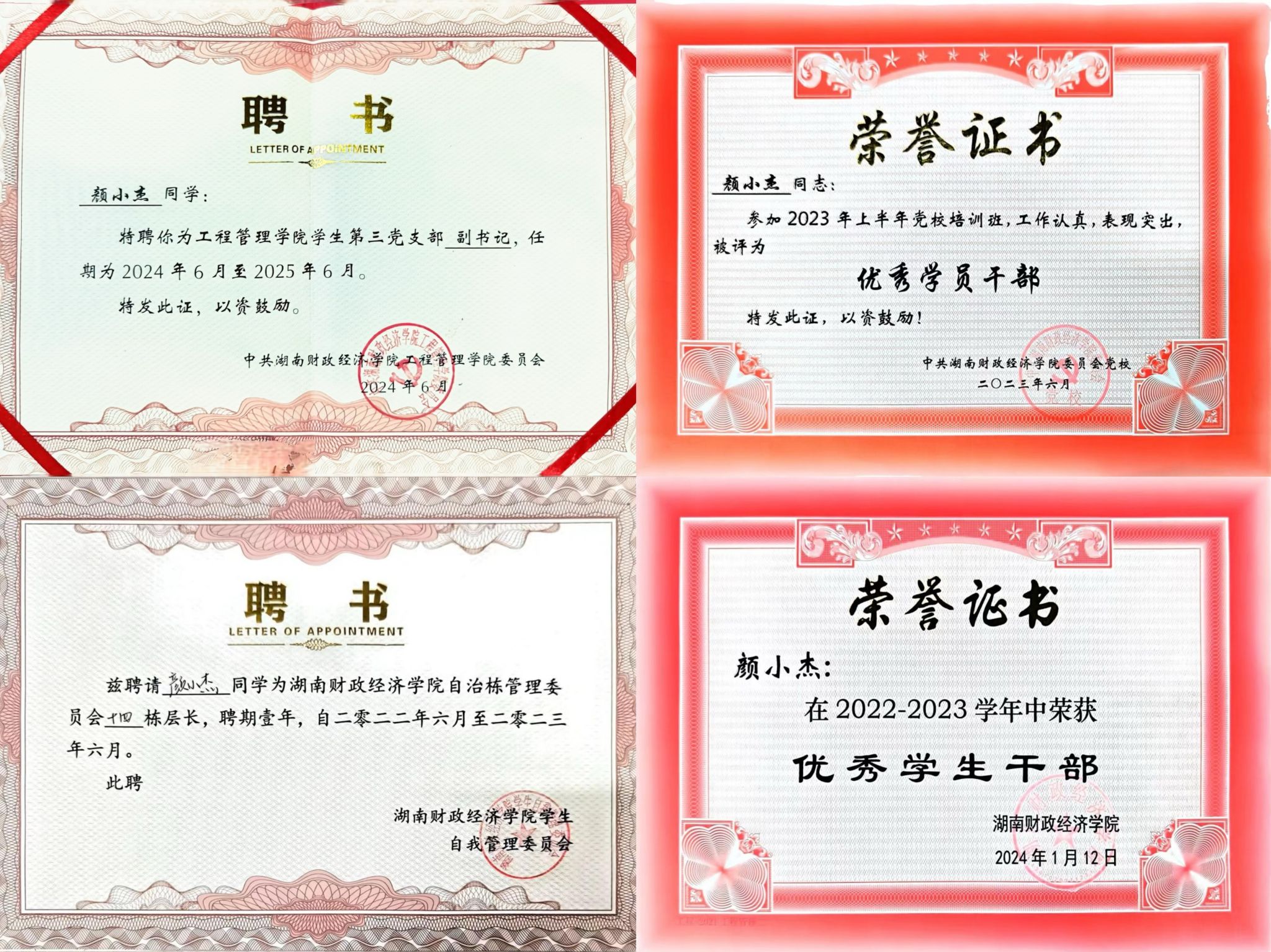 颜小杰,中共党员,best365中国官方网站工程管理2021级本科生,研究生上岸长沙理工大学。曾担任best365中国官方网站工程管理学院学生第三党支部副书记、工程管理学院2021级年级负责人、2021级工程管理二班班长等职务。在校期间荣获校级优秀学生奖学金、“三好学生”、“优秀学生干部”、“优秀志愿者”等多项荣誉,充分彰显其突出的综合能力。