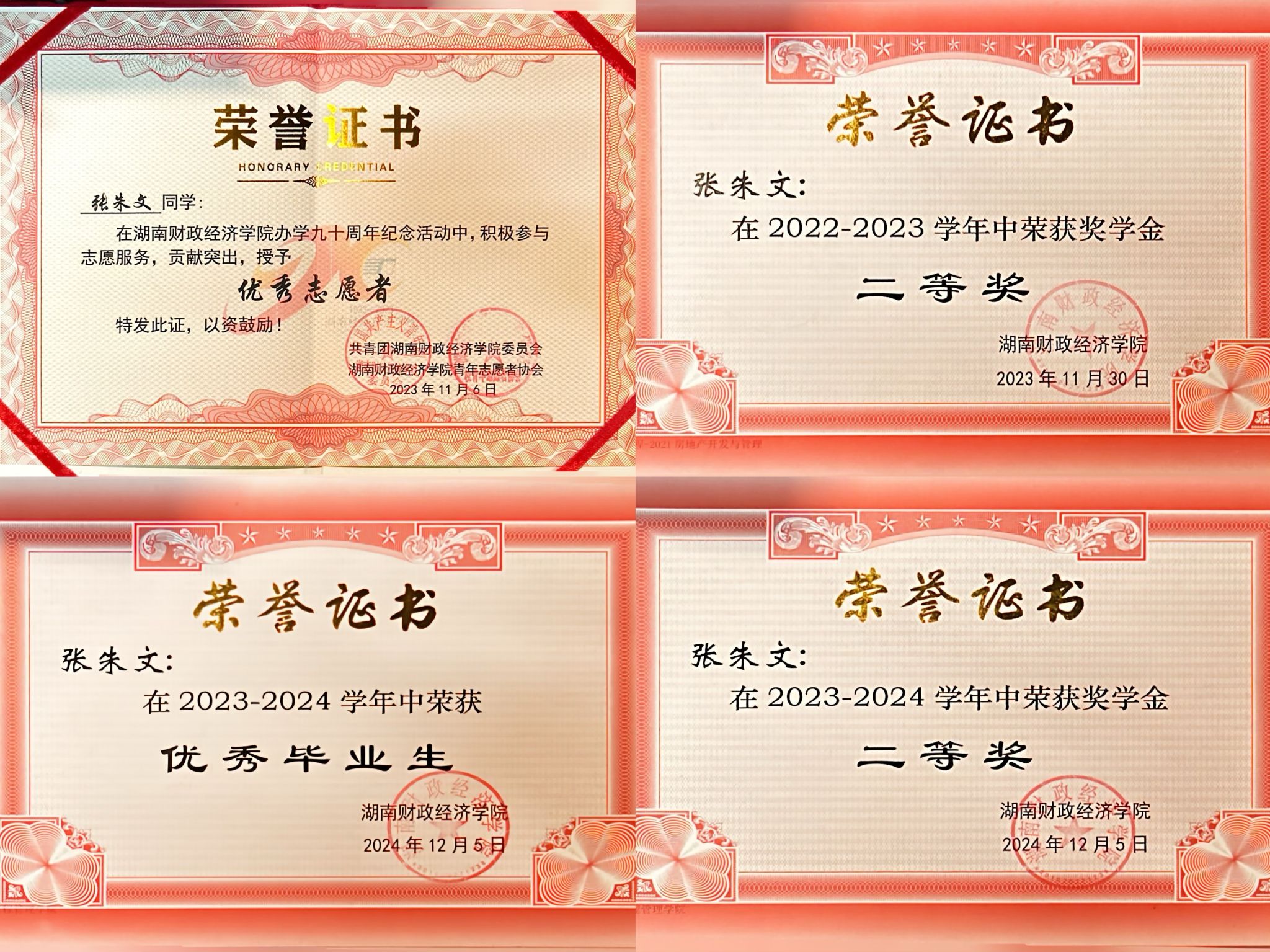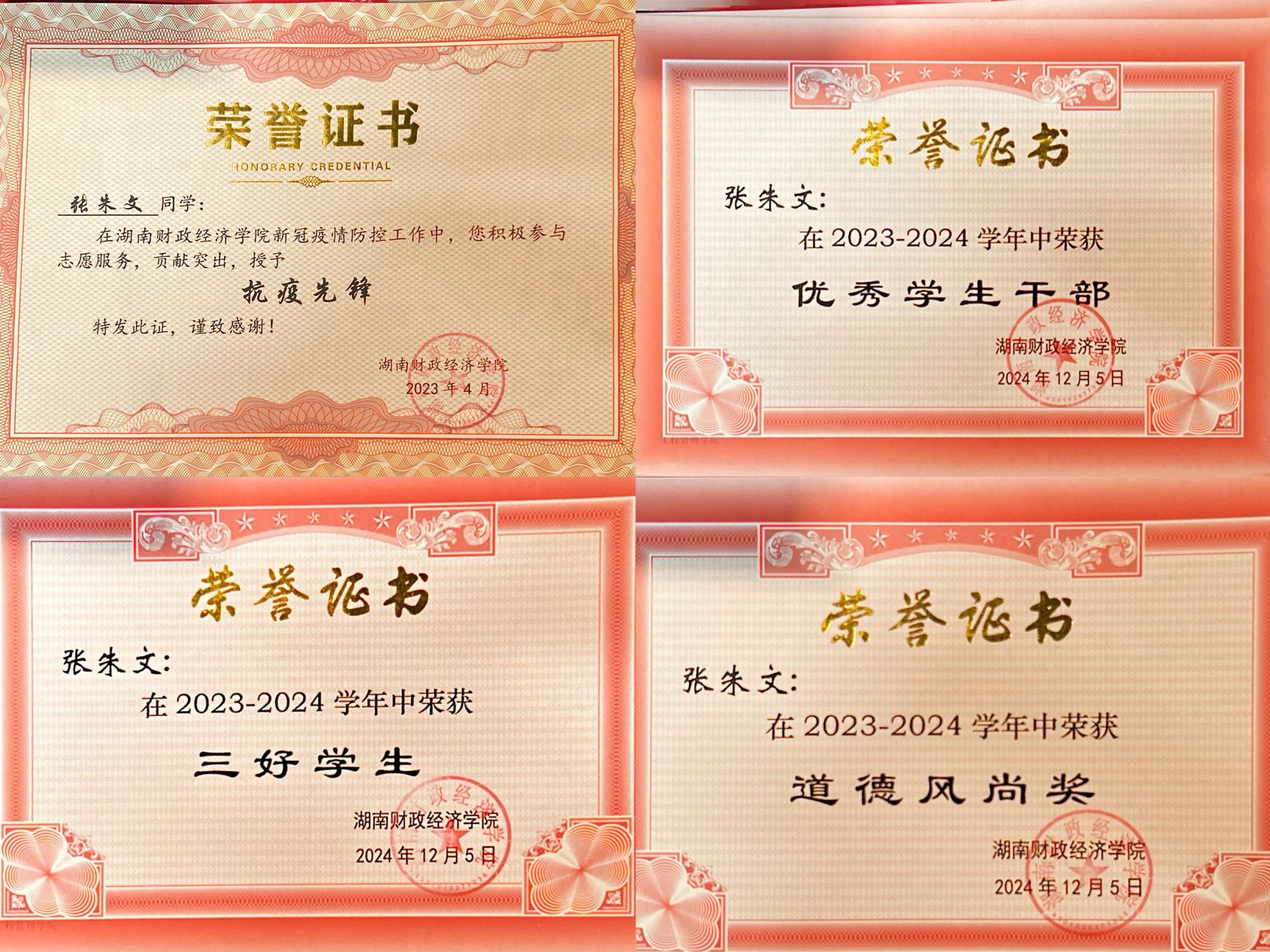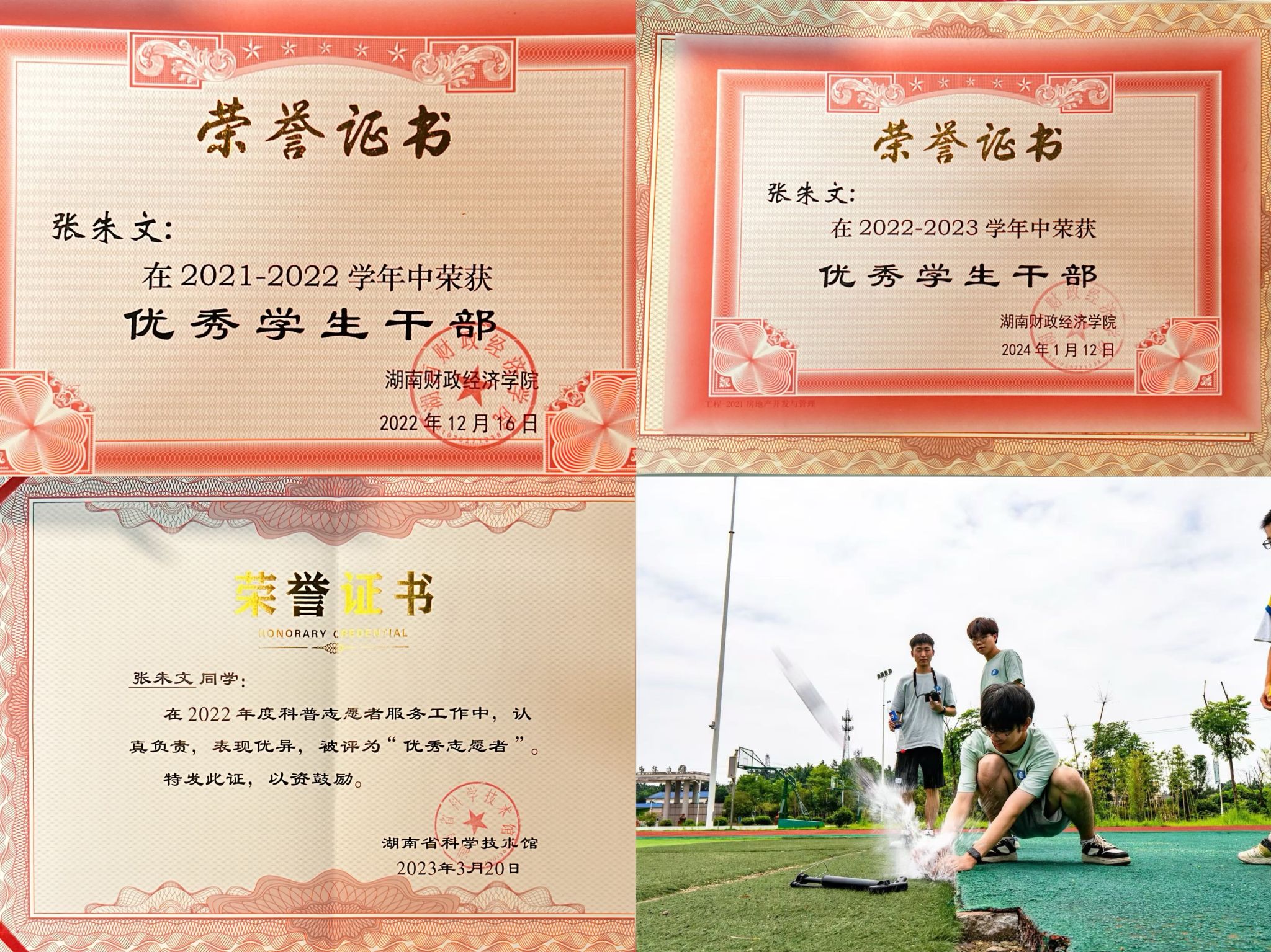 张朱文,男,汉族,中共党员,湖南常德人。荣获湖南省优秀毕业生,湖南省科技馆优秀志愿者,best365中国官方网站优秀志愿者,抗疫先锋,三好学生,道德风尚等奖项,连续三年评得校级优秀学生干部,连续三年荣获校级二、三等奖学金,任第二十届校青年志愿者协会主席团副主席,累计志愿服务时长1000+小时,加入校团委第五届微光志愿服务队担任副队长一职,参与推广全国普及普通话活动,参加全国大学生暑期三下乡活动,其支教实践被红网等媒体报道,还参与2024年春节联欢晚会长沙分会场特别节目的录制。