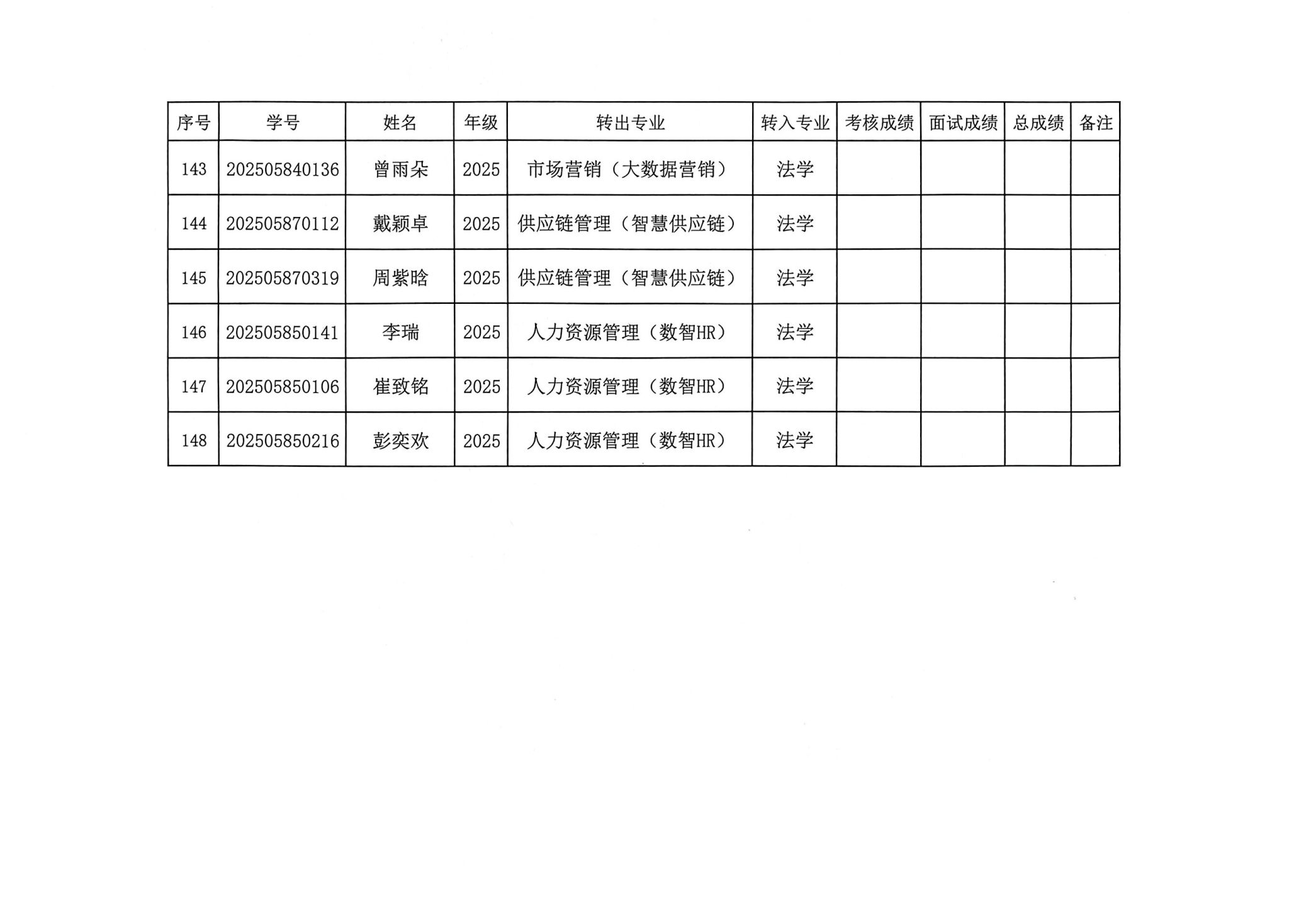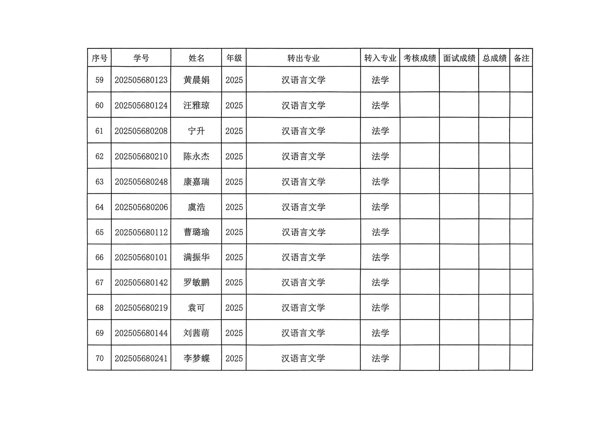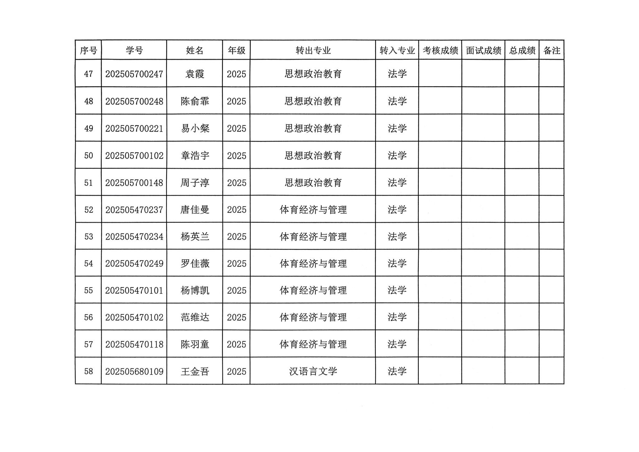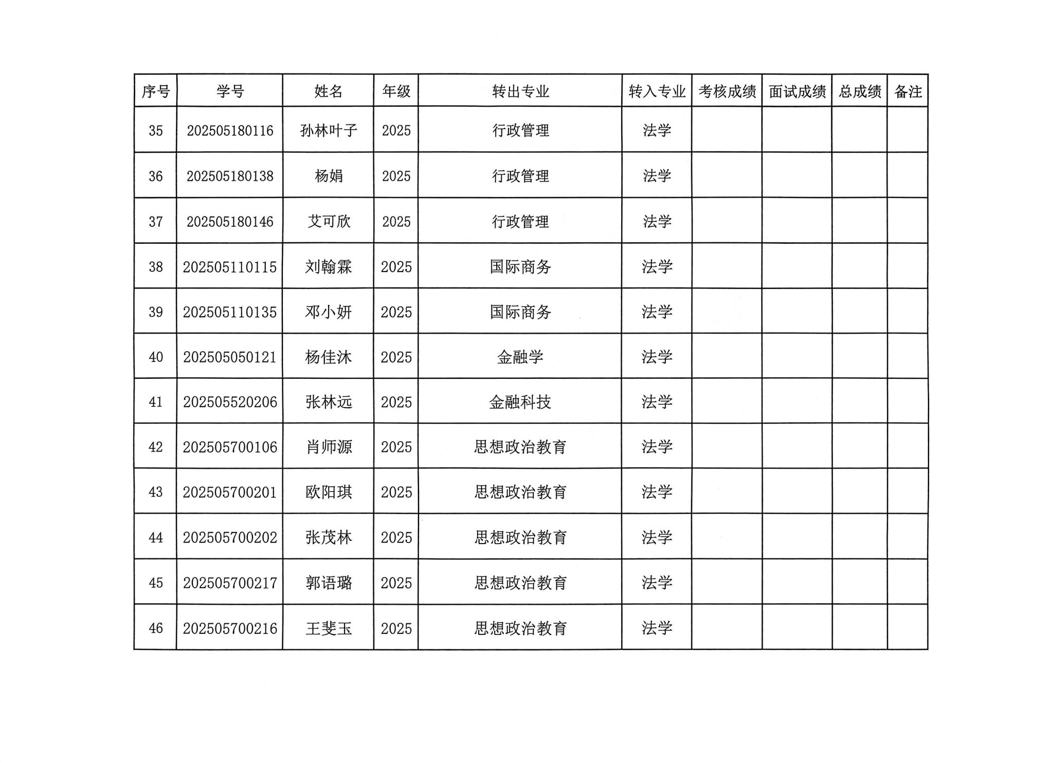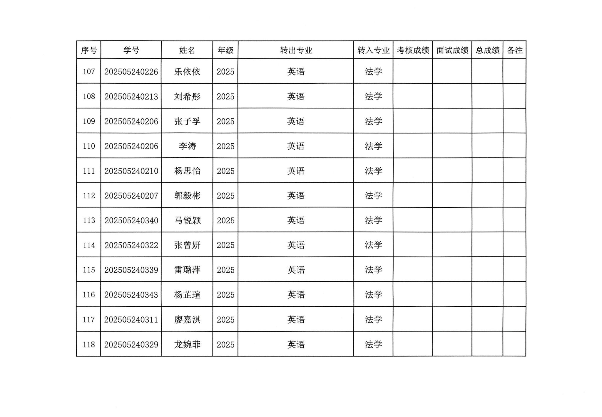 法学与公共管理学院2025级本科生转法学专业拟同意转入名单公示表