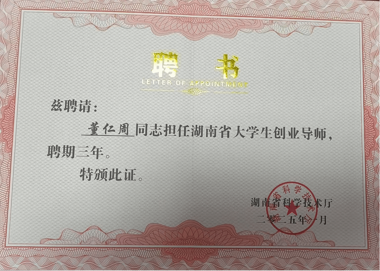 5名湖南省首批大学生创业导师接受聘书