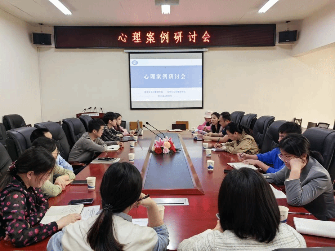 (本网讯)为提升辅导员队伍心理危机应对能力,增强心理危机干预的科学性和有效性,促进学院心理健康教育工作高质量发展,4月22日下午,法学与公共管理学院联合信息技术与管理学院在办公楼315会议室举办心理案例研讨会。法学与公共管理学院副书记李茂华、学工办主任彭兰、信息与技术管理学院学工办主任陈慧以及全体辅导员参加了研讨活动。学校心理健康教育与咨询中心吴彩虹教授、学生工作部学生事务与宿舍管理科科长孙颂丰到会指导。