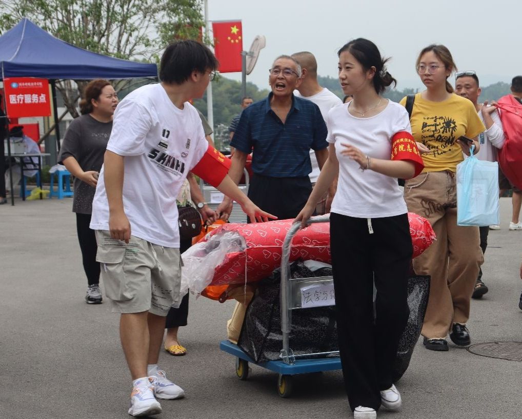(本网讯)金秋九月,丹桂飘香,9月12日至14日,法学与公共管理学院2024级新生如约而至,学院党委书记何四海、党委副书记李茂华、副院长姚德超、学工办主任彭兰及辅导员等老师全程驻扎雷锋学院喜迎2024级新生,来自学院不同专业的40余名志愿者活跃在雷锋学院各个角落,有序引导新生报到、协助行李搬运,成为校园里面最靓丽的一抹志愿红,让新同学更快地融入有爱温馨的学校大家庭。