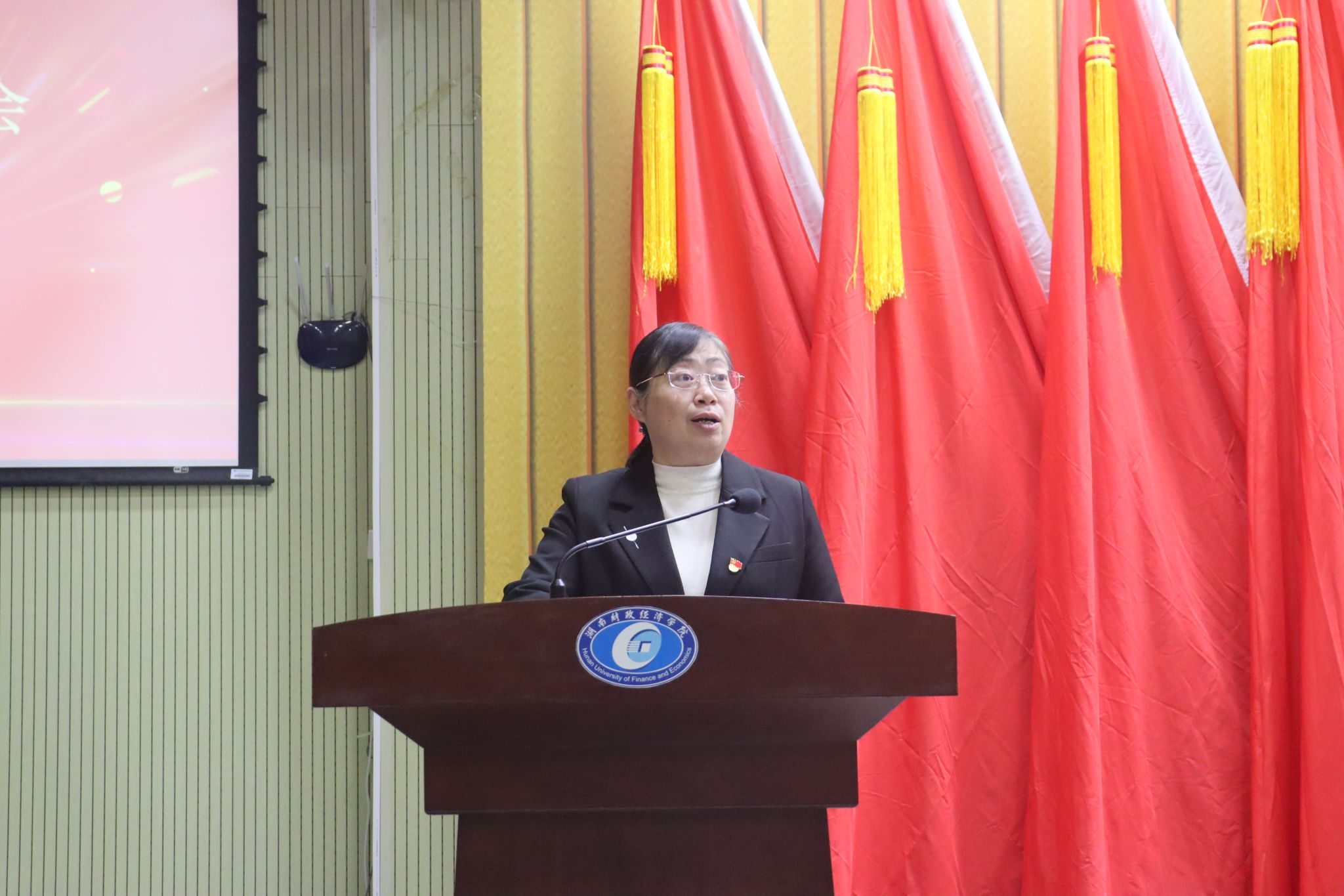 大会在庄严的国歌声中拉开了帷幕。欧倩代表学院党委向大会作了题为《刚毅坚卓,守正创新,全力推动学院各项工作内涵式高质量发展》的工作报告,全面回顾并总结五年来法学与公共管理学院党委取得的成绩和工作经验,明确提出学院党委今后五年发展的主要任务和奋斗目标。随后,李蓓同志代表学院党委作近五年的党费收缴情况报告。