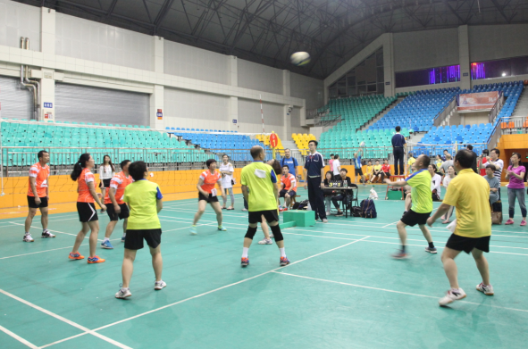 自5月15日开赛以来,体育馆内热闹纷纷,气氛活跃,无论是参赛的队员还是拉拉队员都热情高涨,信心满满。党委书记肖湘愚、校长伍中信、党委副书记晏金平、副校长王焕清等校领导纷纷前来观看比赛,为参赛队员们加油助阵。初赛场上,青年队员们身手轻快敏捷,中年队员们经验老成,彼此互相密切配合,全力拼搏,一传、二垫、三扣,不断地来回,用心打着每一个球。赛场上加油呐喊呼声不断,激动人心。