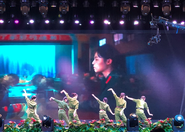 舞蹈《绒花》,由罗华希、童静等10名师生合作,一架钢琴、一抹曲调、一场舞蹈把《绒花》蕴涵的唯美意味带给现场观众。LED背景屏幕同时闪现电影《芳华》的镜头剪辑,歌声与钢琴交织,舞姿与背景画面映现,将对青春的怀旧与对未来的执着,演绎得恰到好处。