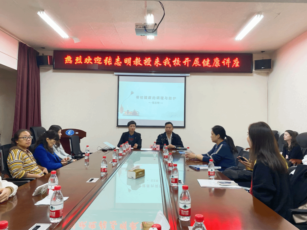 /为进一步提高教职员工的健康意识和自我保健能力,关爱教职工的脊椎健康,有效预防常见职业病对身体的危害,11月9日下午,校工会邀请湖南省胸科医院疼痛康复科学科带头人、副主任医师张志明在办公楼4楼学术交流会议室以“向脊椎要健康!”主题作专题讲座。校工会副主席兼女工委主任王牡娣主持讲座。