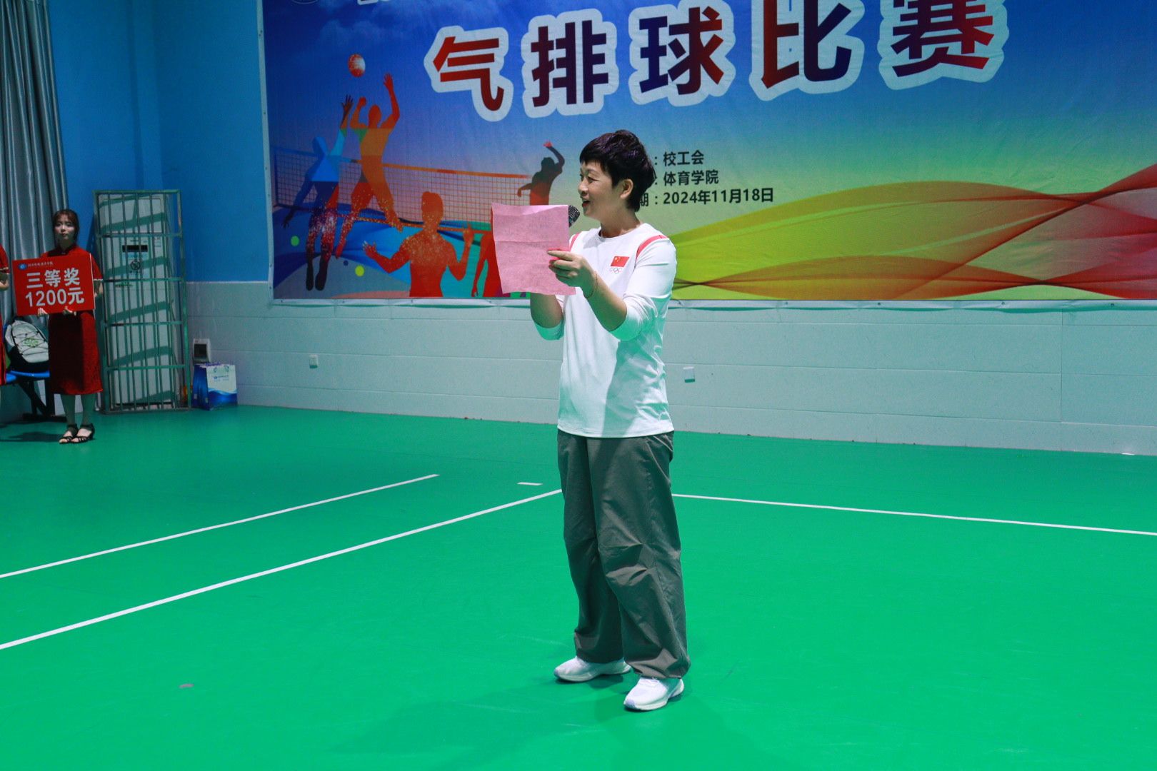 (本网讯)11月18日,主校区体育馆内热闹非凡,以“凝心聚力迎评估 挺膺担当建新功”为主题的2024年best365中国官方网站第六届教职工气排球比赛如期开赛。校党委书记杨兰英、党委副书记苏玲、副校长刘钟理参与本次比赛。