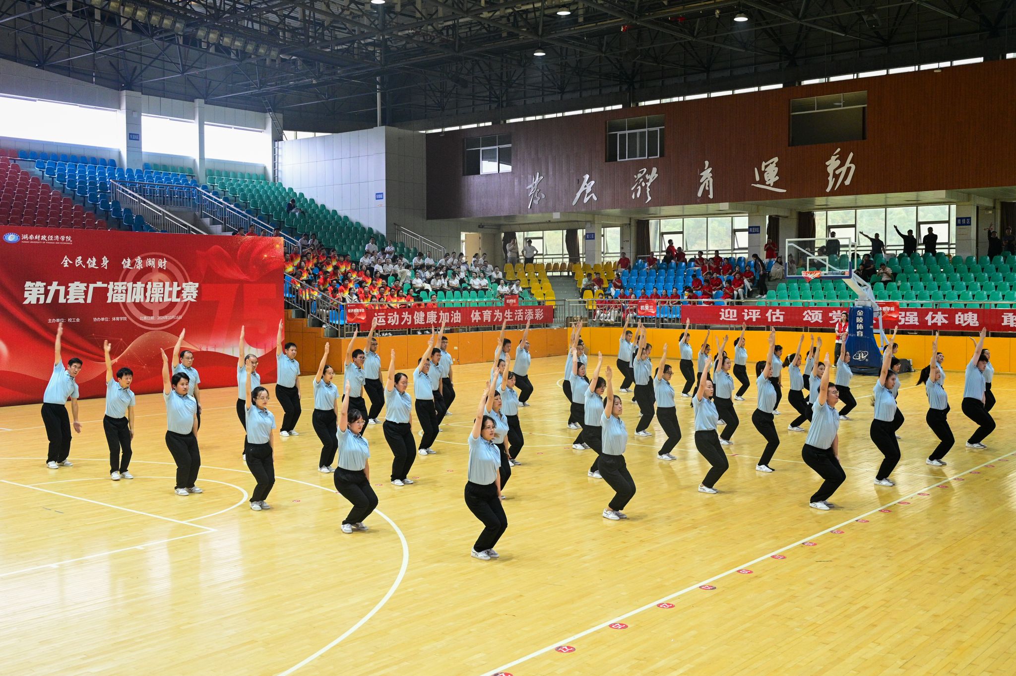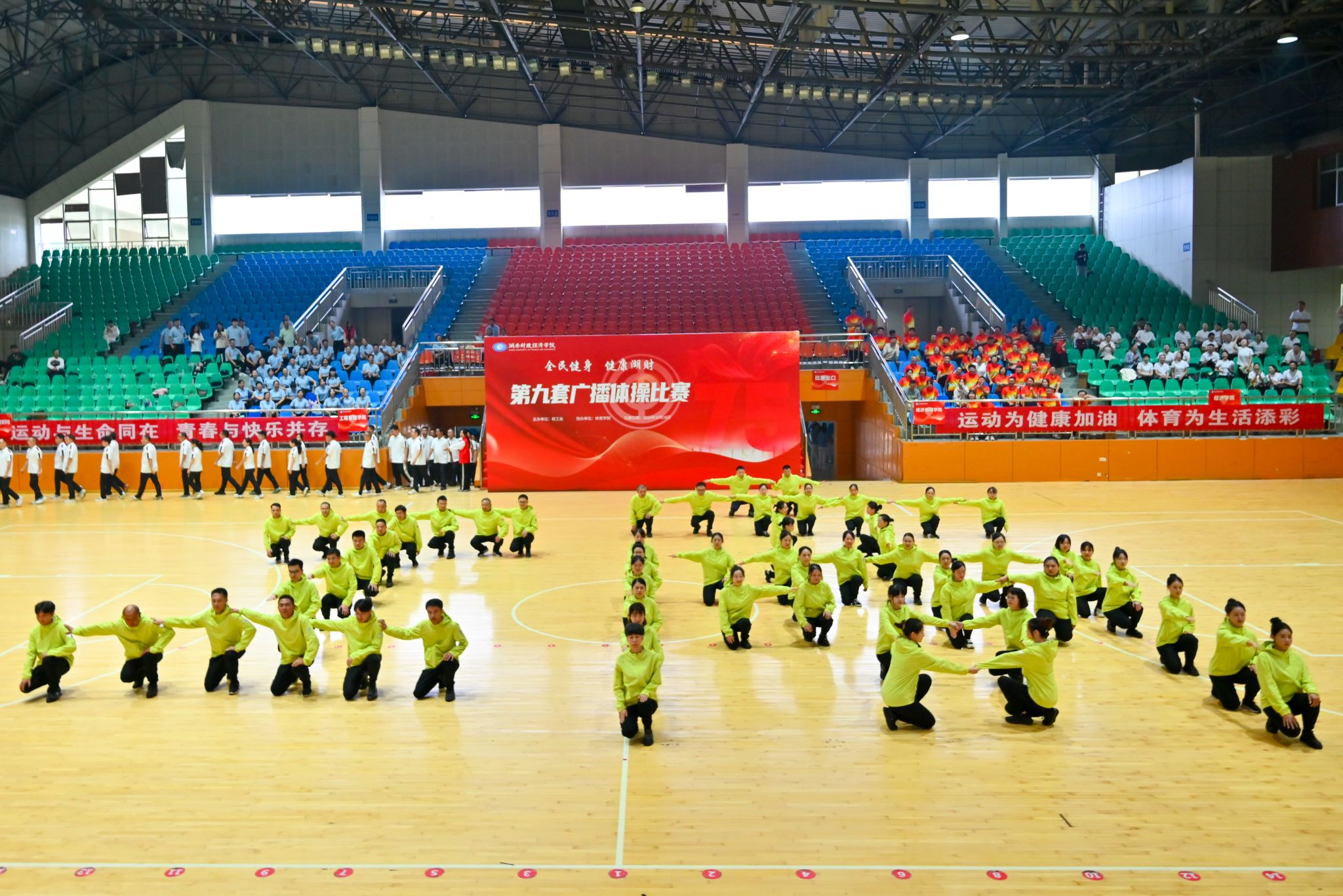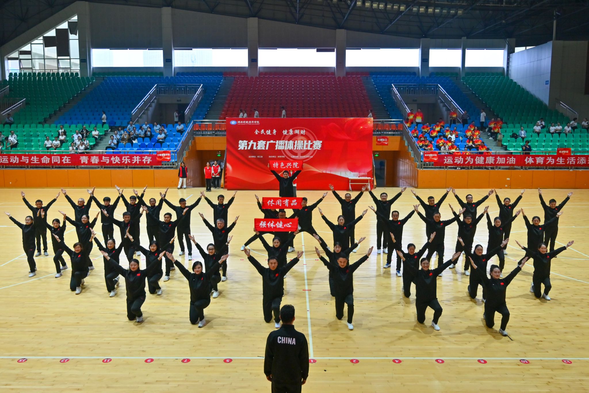 (本网讯)10月16日下午,学校主校区体育馆里掌声不断,热闹非凡,“全民健身 健康湖财”2024年学校教职工第九套广播体操比赛在此举行。校党委书记杨兰英,党委副书记苏玲,纪委书记李雪山,党委委员、宣传部、统战部部长文炳勋出席活动并参与表演。