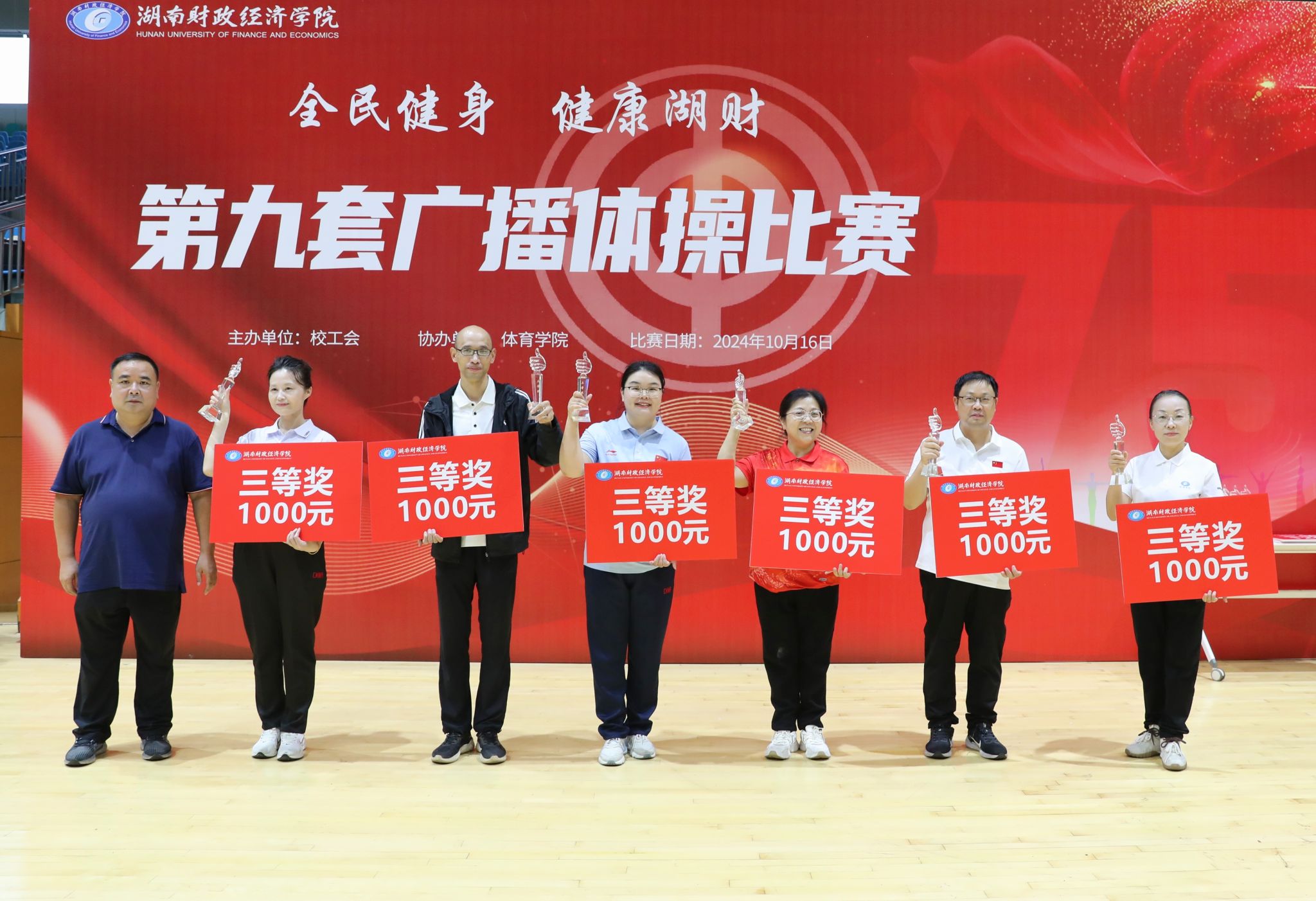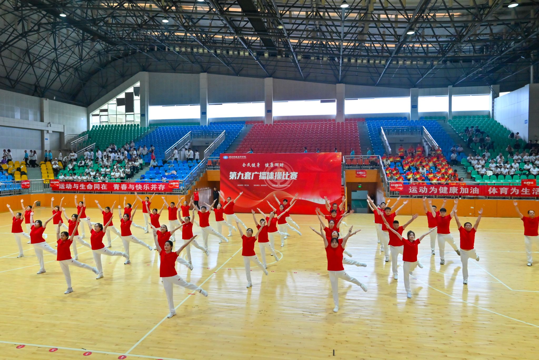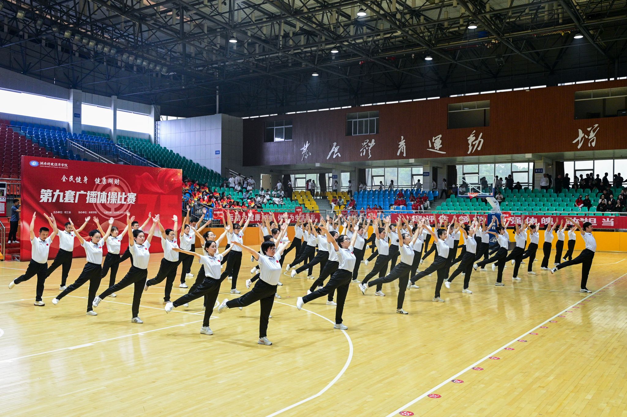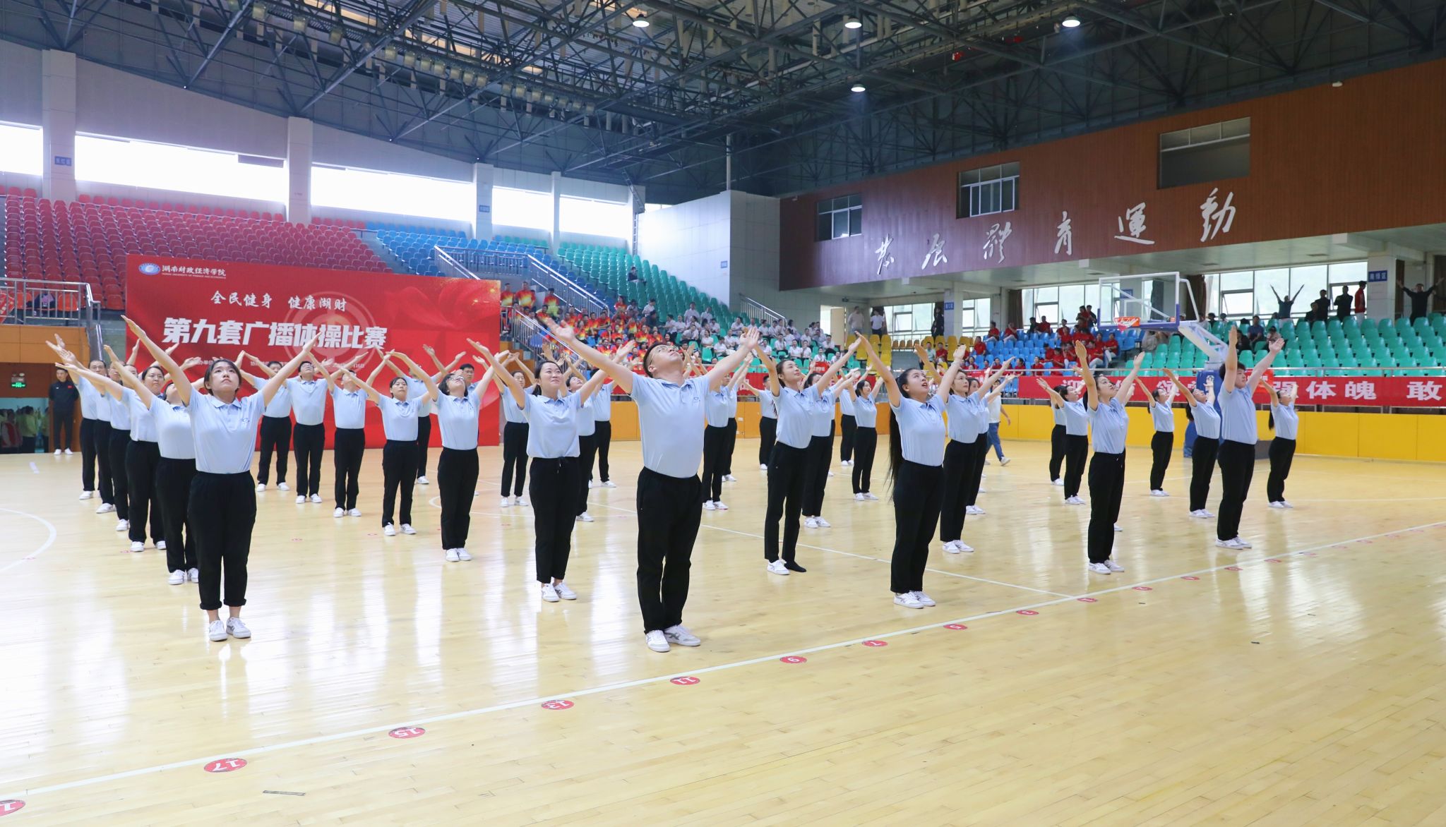 (本网讯)10月16日下午,学校主校区体育馆里掌声不断,热闹非凡,“全民健身 健康湖财”2024年学校教职工第九套广播体操比赛在此举行。校党委书记杨兰英,党委副书记苏玲,纪委书记李雪山,党委委员、宣传部、统战部部长文炳勋出席活动并参与表演。