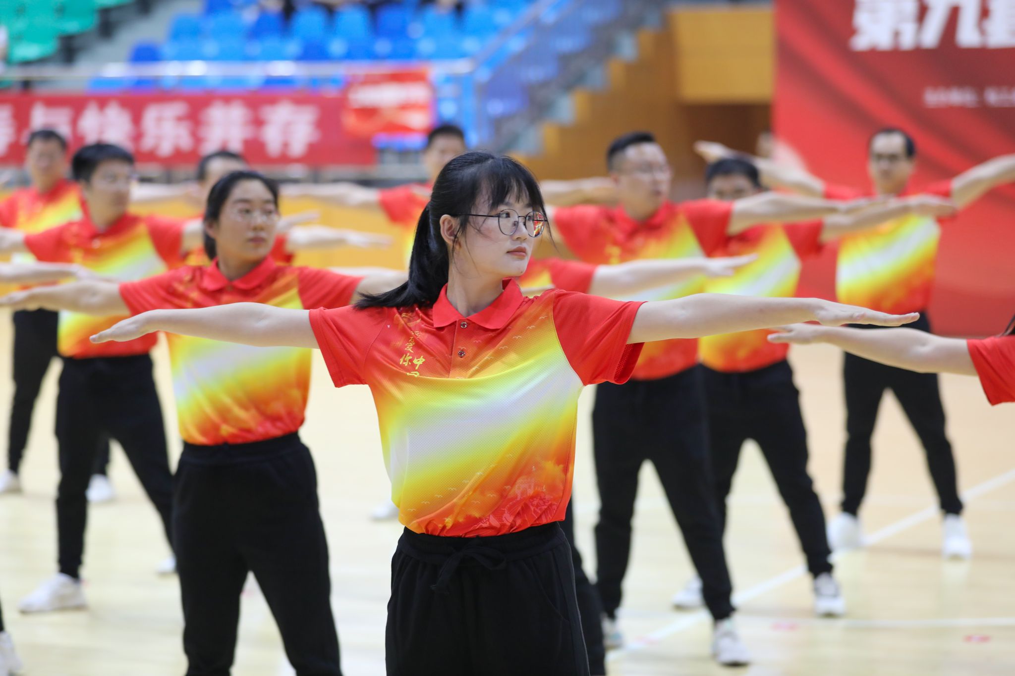 活动现场,由校领导、职能部门正职代表组成的表演队进行了全国第九套广播体操项目展示,不仅展现了学校全民健身的生动画面,也激发了全校18支分工会代表队的1000余名教职工参与比赛的热情。伴着体操的动感音乐,身着统一服装的各参赛队成员,认真地做起了广播体操。他们精神抖擞,转体腾跳,振臂踢腿,动作规范娴熟、整齐划一、舒缓流畅、张弛有度,彰显了best365官网教职工积极进取的精神风貌和健康向上的生活态度。