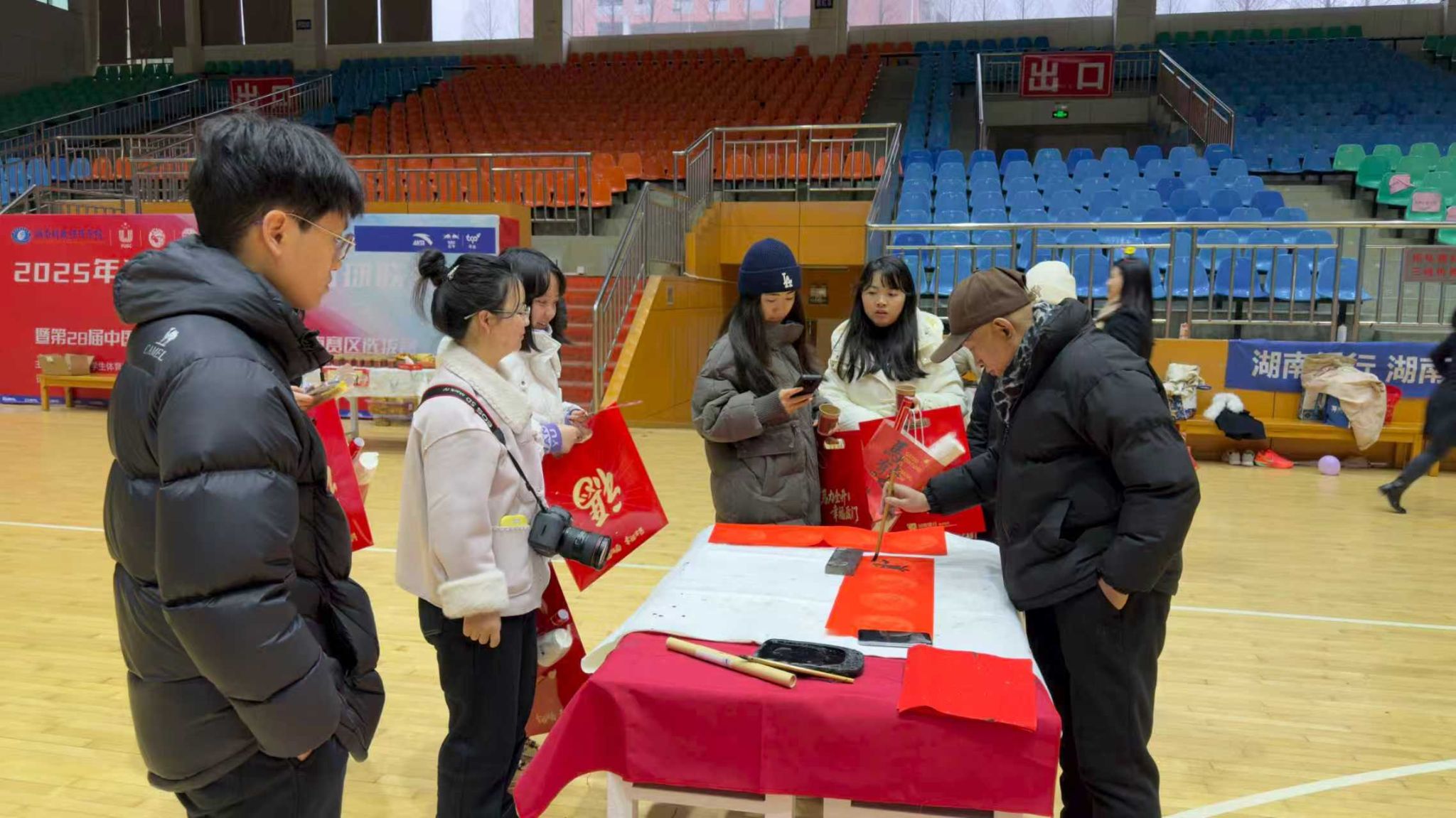(本网讯)1月19日上午,校工会联合湖南银行长沙财院社区支行,在学校体育馆主馆成功举办“万福骏临 书法赐福”新春主题活动,副校长、工会主席刘钟理出席活动,200余名教职工踊跃参与本次活动。