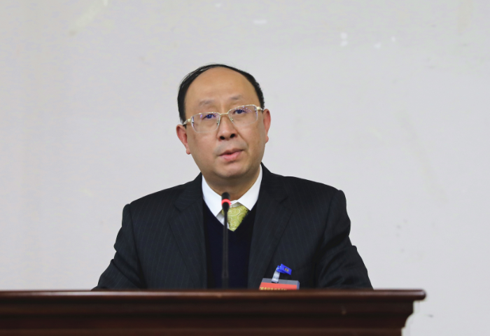副校长赵鹤平作财务决算预算(草案)报告 何妍/摄