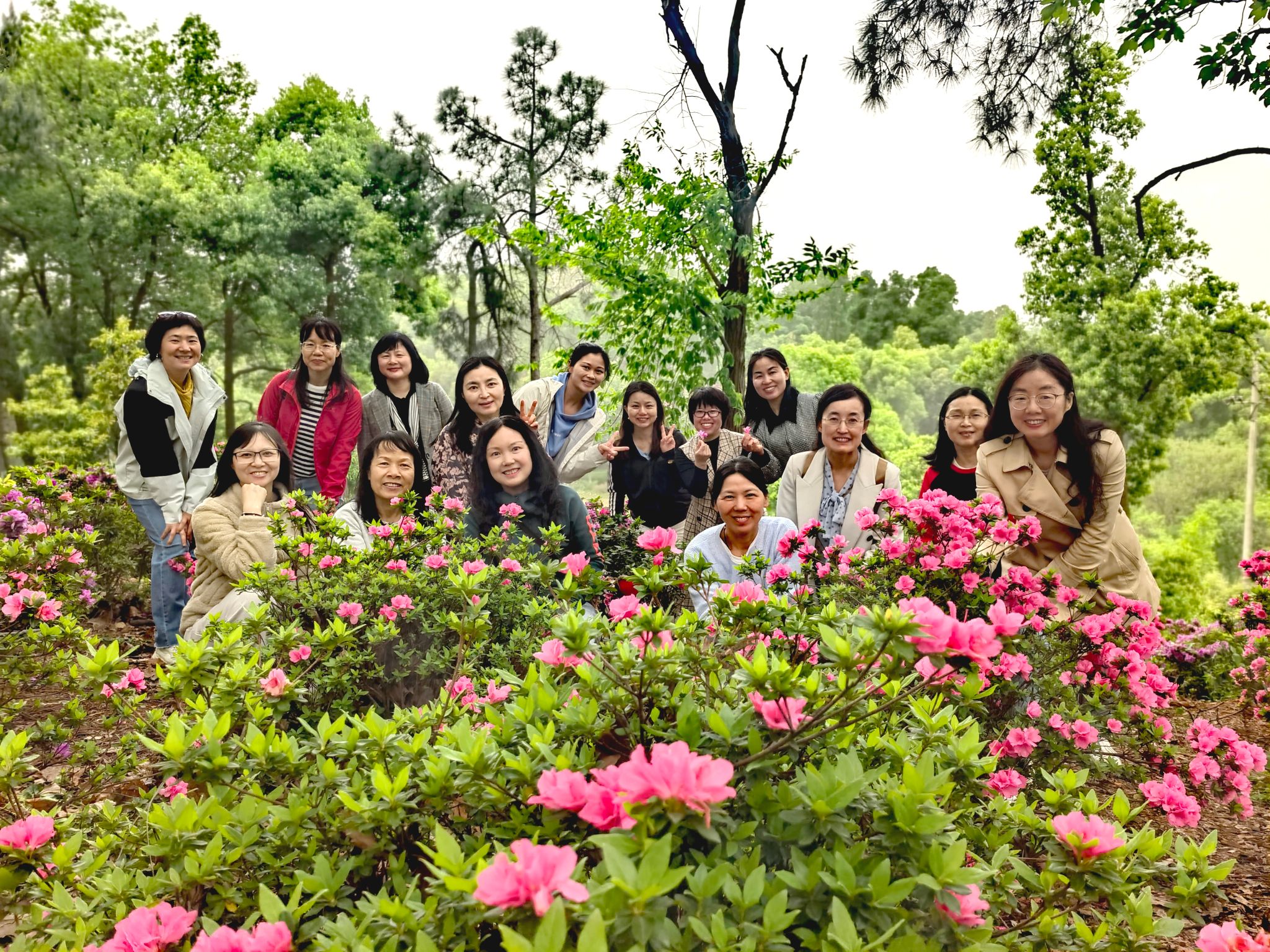 湖南省植物园的樱花林与杜鹃花花园,成为此次活动的天然“疗愈场”。户外运动不仅能提升心肺功能,还能通过接触自然光线与绿色植物缓解焦虑、调节情绪。踏青过程中,老师们分享健康食谱与拍照技巧,以轻快的步伐丈量春色,欢声笑语间友谊悄然升华。这群瑜伽人,站在讲台上,是知识的传递者;走进自然,是自己健康的第一责任人。运动赋能生活的话题,也让大家充分意识到,瑜伽运动不仅是肌肉的锻炼,更是女性自我关怀的仪式。