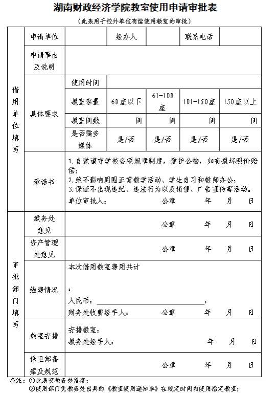 best365中国官方网站教室使用申请审批表