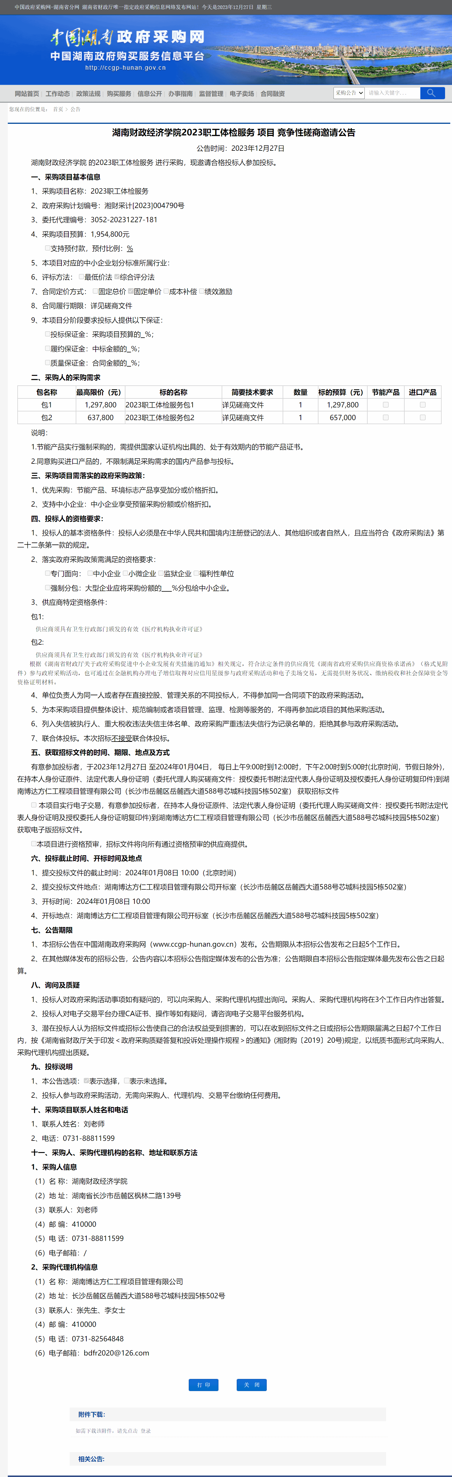 湖南省政府采购网:best365中国官方网站2023职工体检服务项目竞争性磋商邀请公告