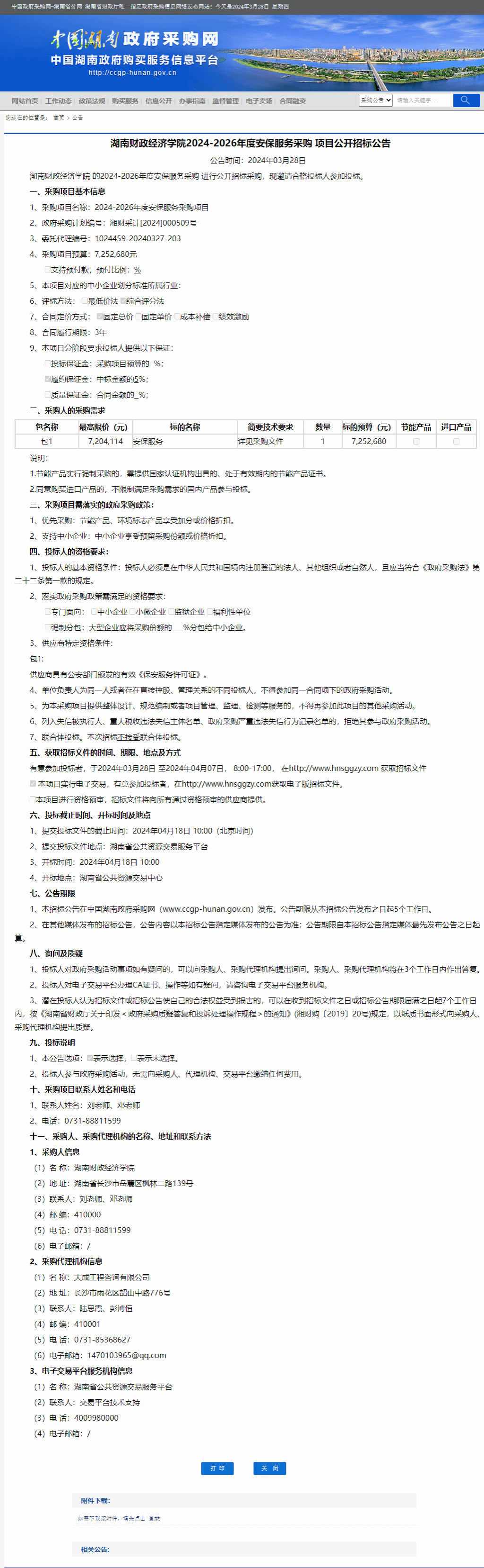 湖南省政府采购网:best365中国官方网站2024-2026年度安保服务采购项目公开招标公告