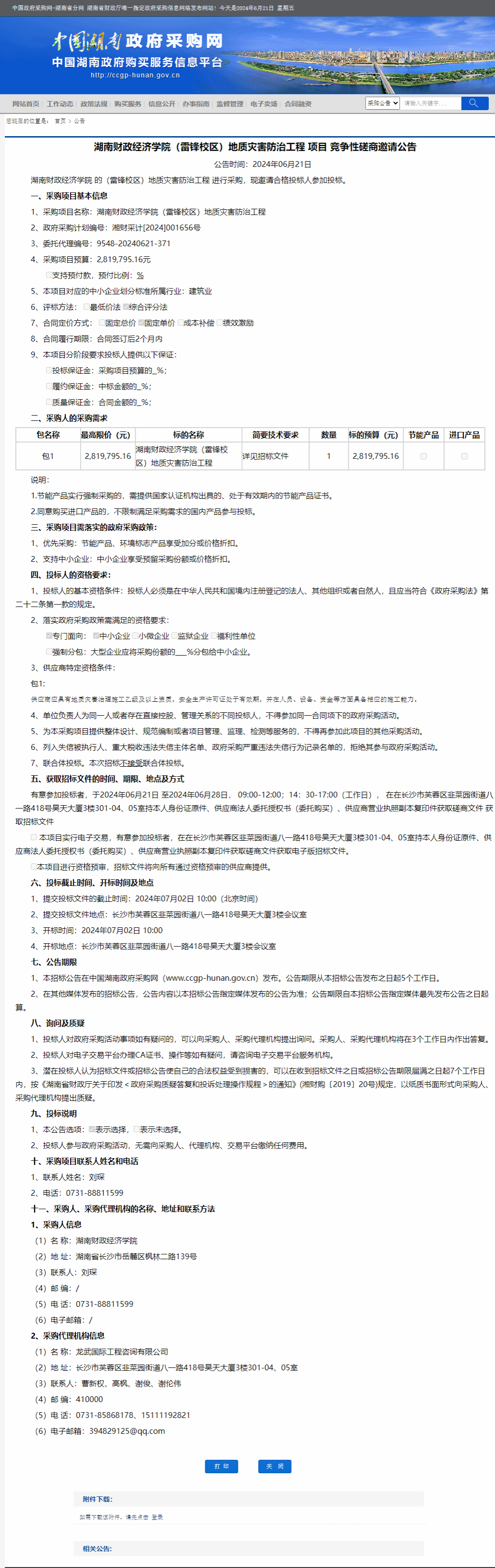 湖南省政府采购网:best365中国官方网站(雷锋校区)地质灾害防治工程项目竞争性磋商邀请公告
