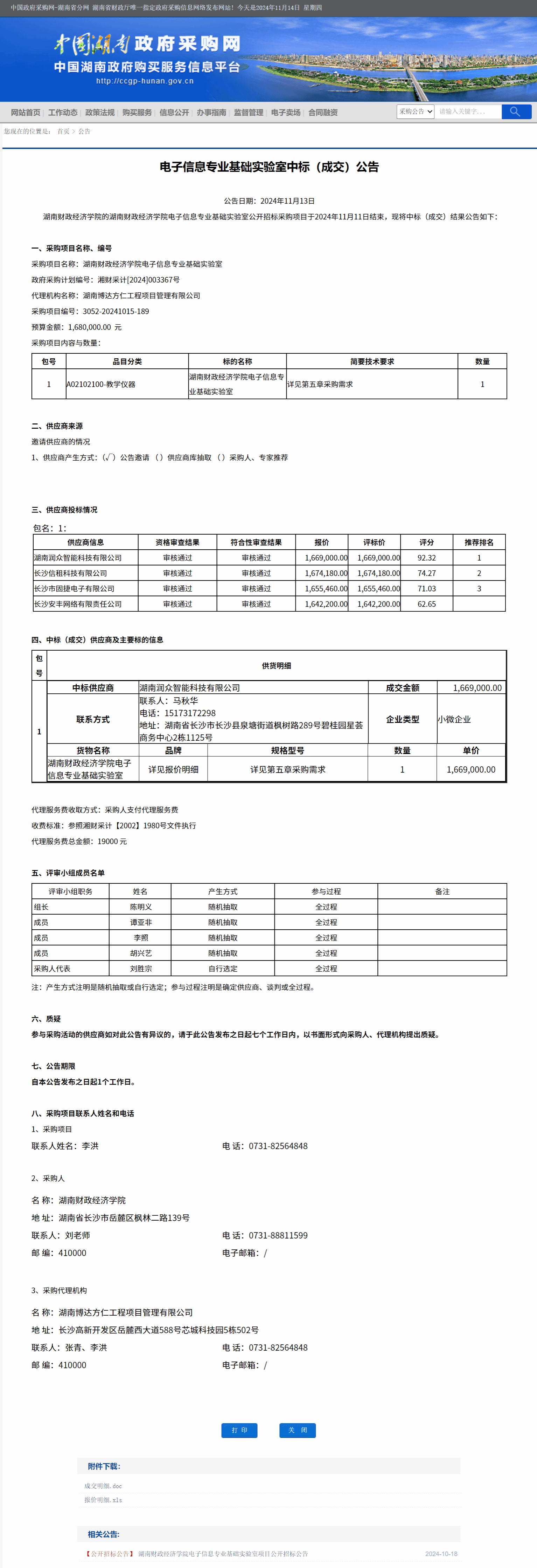 湖南省政府采购网:best365中国官方网站电子信息专业基础实验室中标(成交)公告