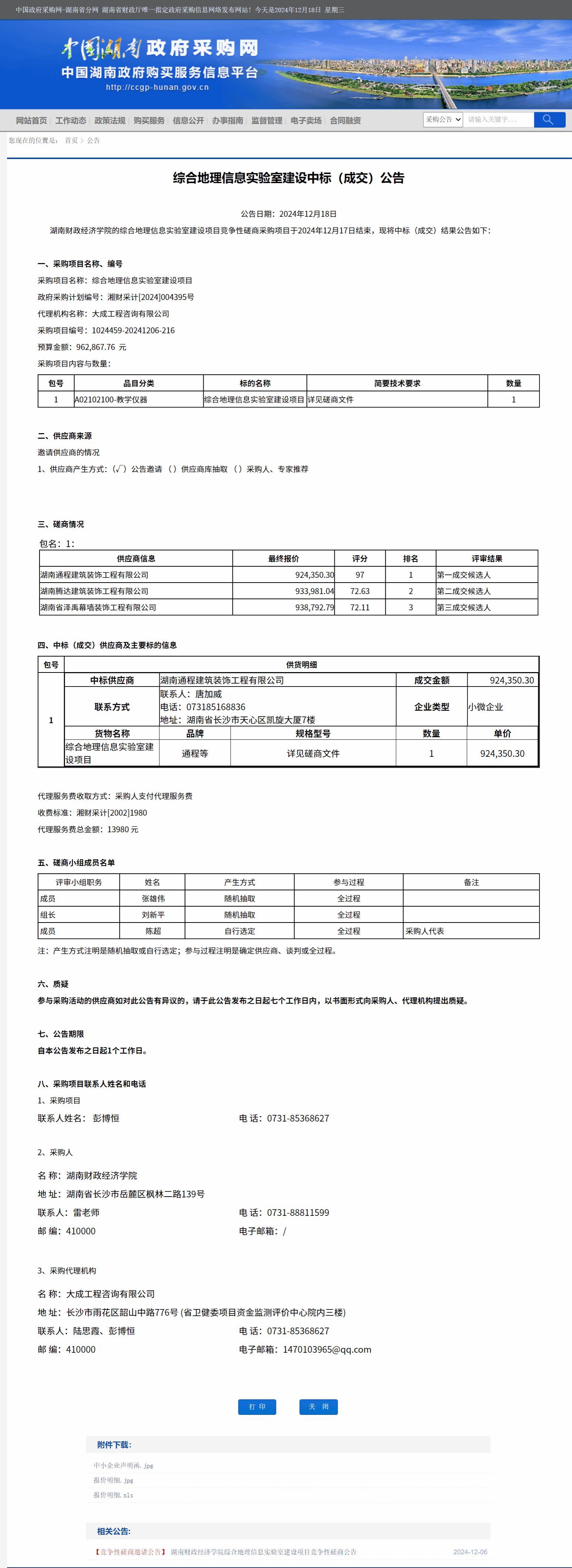 湖南省政府采购网:best365中国官方网站综合地理信息实验室建设中标(成交)公告