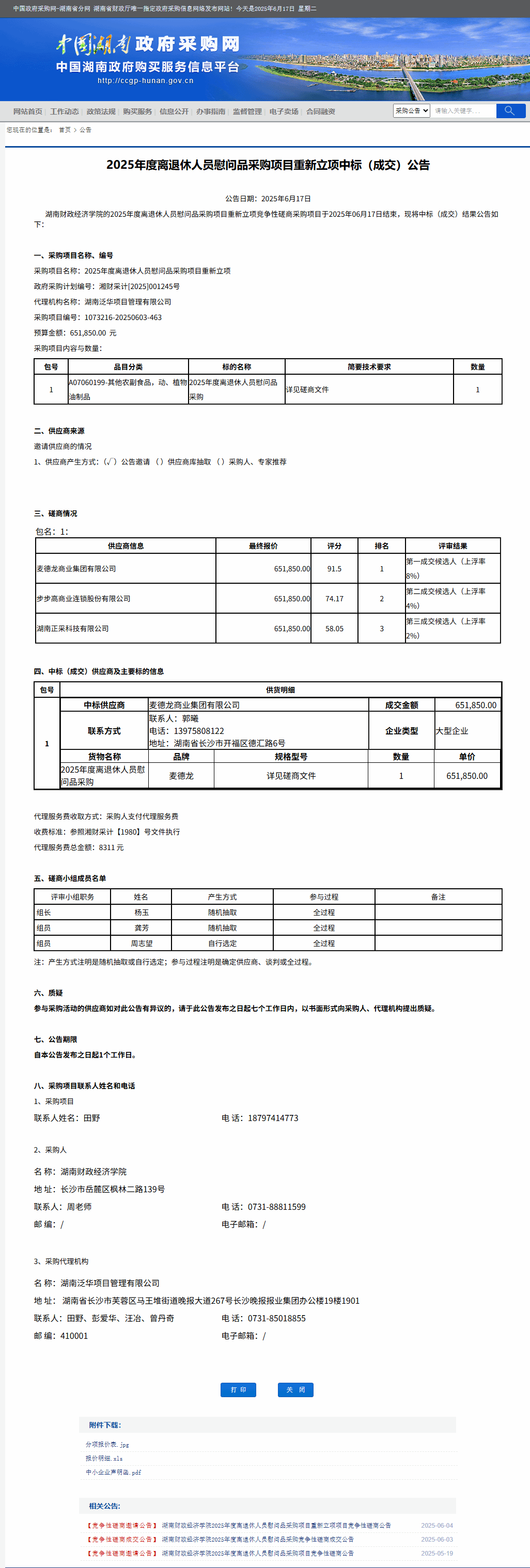 湖南省政府采购网:best365中国官方网站2025年度离退休人员慰问品采购项目重新立项中标(成交)公告