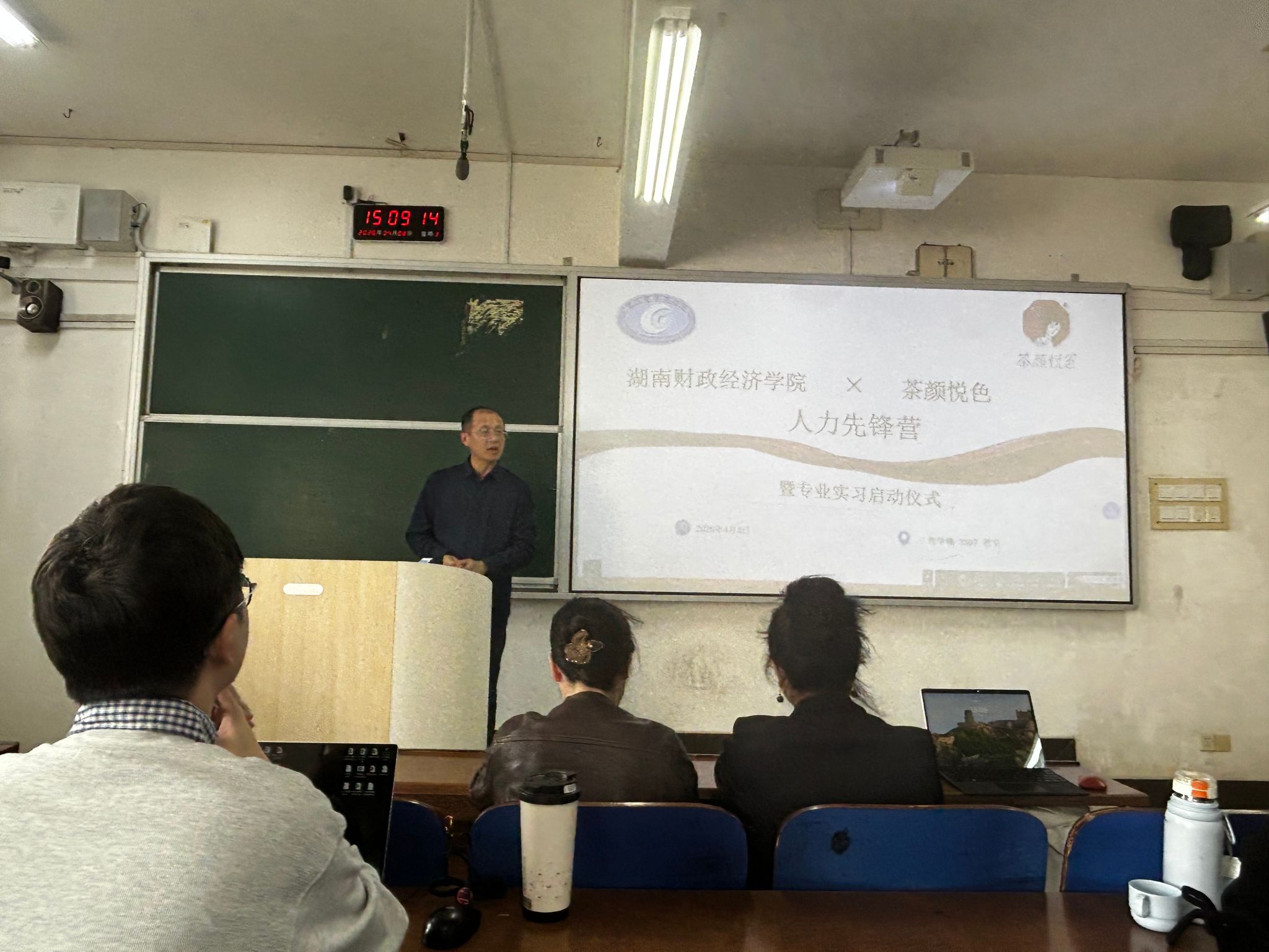 (本网讯)4月8日下午,工商管理学院人力资源管理系与知名茶饮品牌“茶颜悦色”联合打造的“人力先锋营”校企合作项目暨专业实习启动仪式,在学校3307教室举行。本次活动旨在深化产教融合,为学生搭建高质量实践平台,助力应用型人才培养。仪式由人力资源管理系副主任黄波主持。