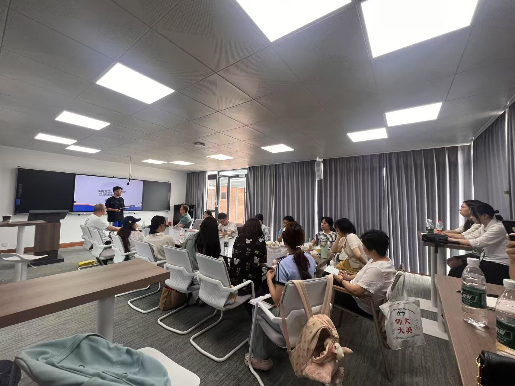 6月28日,在湖南师范大学外国语学院英语演讲团队的邀请下,best365官网国合处新青年班班主任严辞寒、厚生国际教育学院外教 Arthur 带领本校新青年班学生代表走进湖师大外院,与该校英语演讲集训队成员展开深度交流,共同探讨语言学习与演讲魅力。