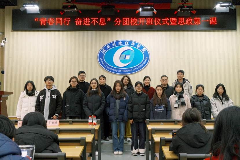 为深入学习宣传贯彻党的二十届三中全会精神,认真贯彻落实团的相关会议要求,充分发挥共青团组织作为党的助手和后备军的政治启蒙作用,3月4日,厚生国际教育学院联合外国语学院、数学与统计学院在主校区2j03教室举行“青春同行,奋进不息”分团校开班仪式暨思政第一课。外国语学院党委书记凌飞、数学与统计学院党总支书记王萱、厚生国际教育学院直属党支部书记肖平飞以及各二级学院团总支书记出席活动,来自三个学院的120余名青年团员参加了团校开班。