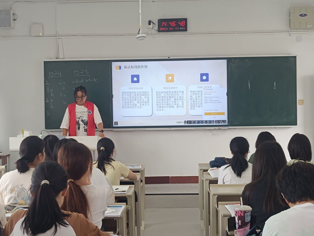 在学习的基础上,宣讲团深入各班级开展交通安全主题宣讲。内容紧密结合大学生实际出行场景,通过案例讲解、视频展播、互动问答等形式,普及交通安全知识,强调遵守交通规则的重要性,引导学生增强自我保护意识,自觉践行文明出行理念。宣讲现场气氛活跃,同学们在思考和互动中深化了对交通安全的认识,纷纷表示将从自身做起,争做文明交通的践行者。
