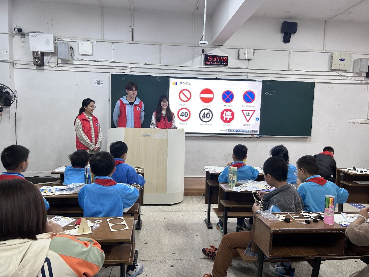 此外,宣讲团积极拓展宣传途径,联合校青年志愿者协会,为教职工子女策划了一场别开生面的“交通安全启蒙课堂”。活动针对儿童特点,设计了交通标志识别游戏、安全过马路情景模拟以及趣味涂鸦等互动环节。宣讲员引导孩子们在“玩中学”,帮助他们认识道路标志,掌握安全通行口诀,让孩子们在轻松愉悦的氛围中将基本的交通安全规则牢记于心。
