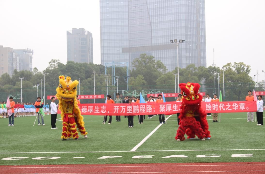 图为厚生国际教育学院运动会开幕式舞狮表演 曾青丹摄