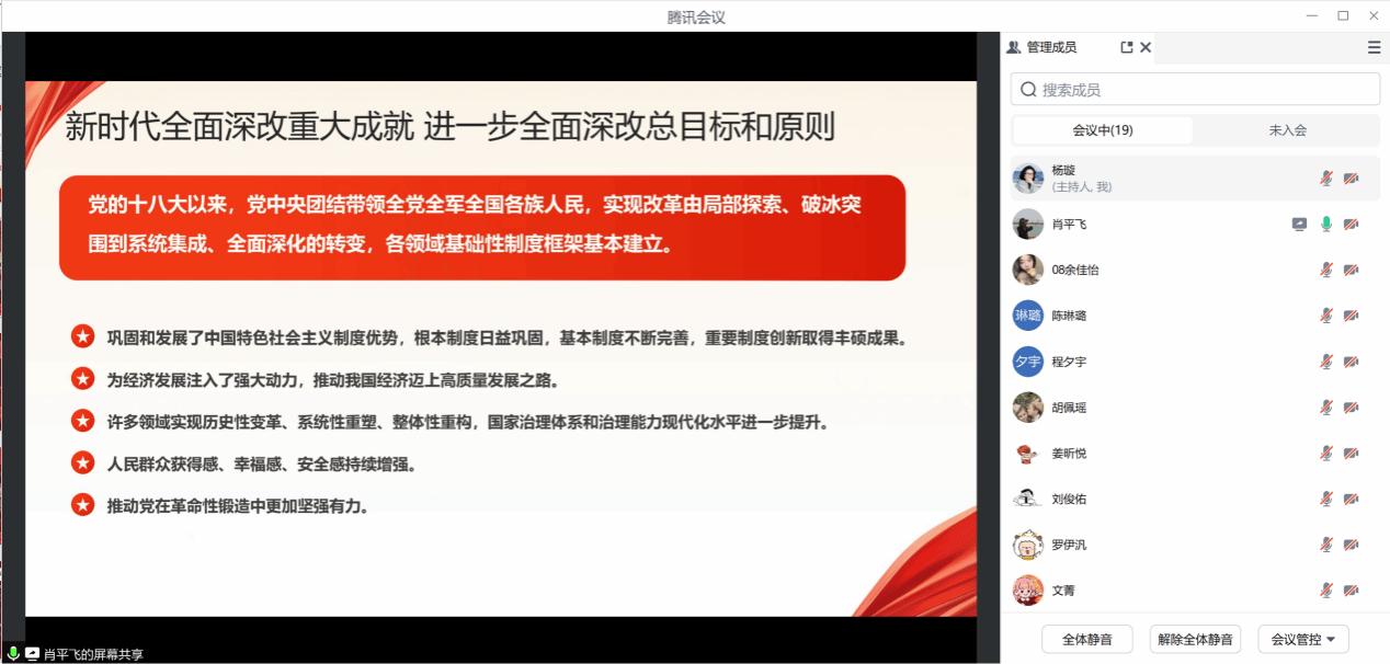 2024年8月28日上午,厚生国际教育学院直属党支部开展“深化全会精神 争做改革先锋”主题党日活动,本次主题党日由直属支部书记肖平飞主持,全体党员参加,活动采取线上会议的形式进行。