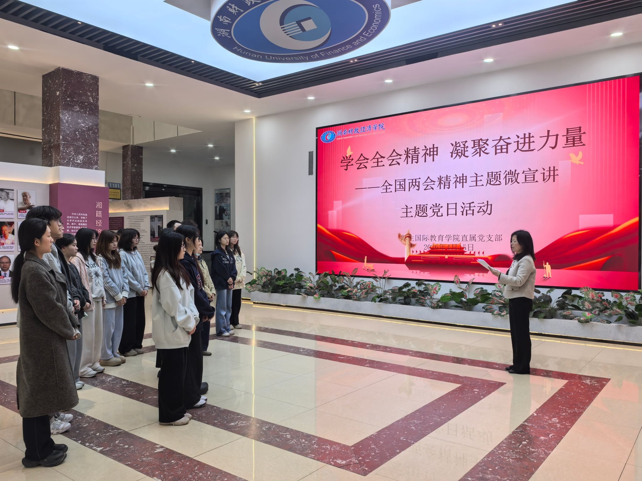 随后,支部书记肖平飞围绕全国两会精神开展主题微宣讲。宣讲紧扣青年发展、教育事业、国家安全等重点内容,用事实、数据与典型案例,将“国家大事”具体化为“身边小事”,引导青年学子把个人理想追求融入党和国家事业之中,推动两会精神入脑入心、落地见效。